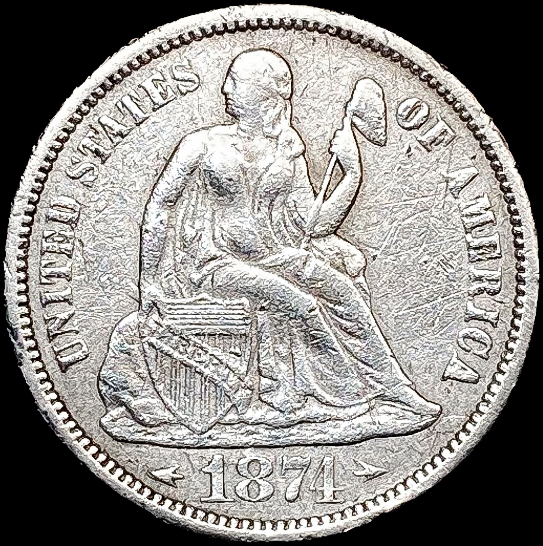 1874 Arws Seated Liberty Dime NEARLY UNCIRCULATED