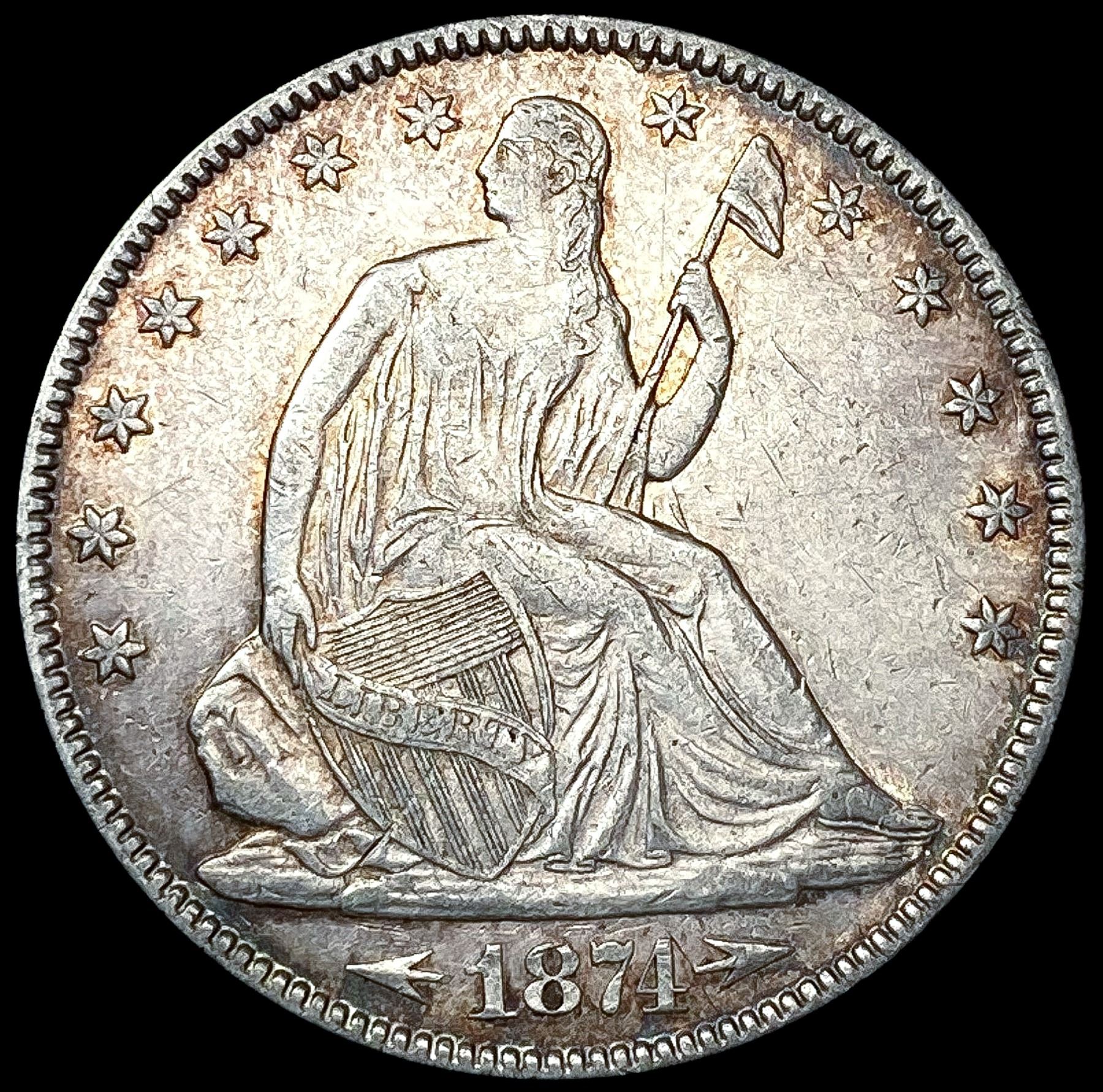 1874 Arws Seated Liberty Half Dollar CLOSELY UNCIR