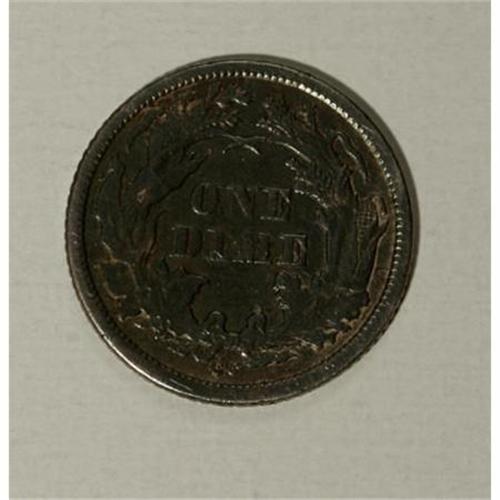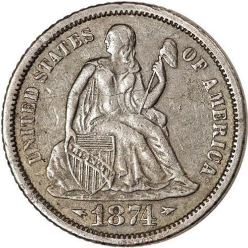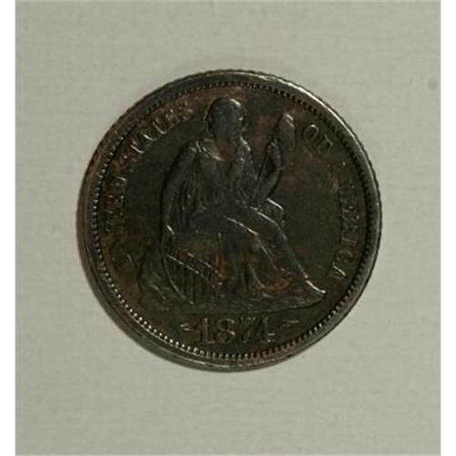 <B>1874-CC 10C Arrows XF40 Scratched, Environmental Damage Uncertified.</B></I> The 1874-CC Arrows dime ranks among the rarities in Carson City coinage. Despite a few issues, this piece is sharply detailed and highly desirable. Deep gray surfaces are accompanied by traces of lighter tan on each side. The surfaces are slightly porous and scratched, and the entire coin has been artificially toned. But there is good news; the characteristic die crack through both letters of the CC mintmark is clear and crisp, proving its authenticity. Sharply detailed examples of this date are seldom seen in the market place; an important opportunity is presented to bidders attending the current sale.<BR><BR><B>Coin Engraver:</B> Christian Gobrecht<BR><BR><b>Shipping:</b> Coins & Currency (<a target="_blank" href="http://www.heritageauctions.com/common/shipping.php">view shipping information</a>)