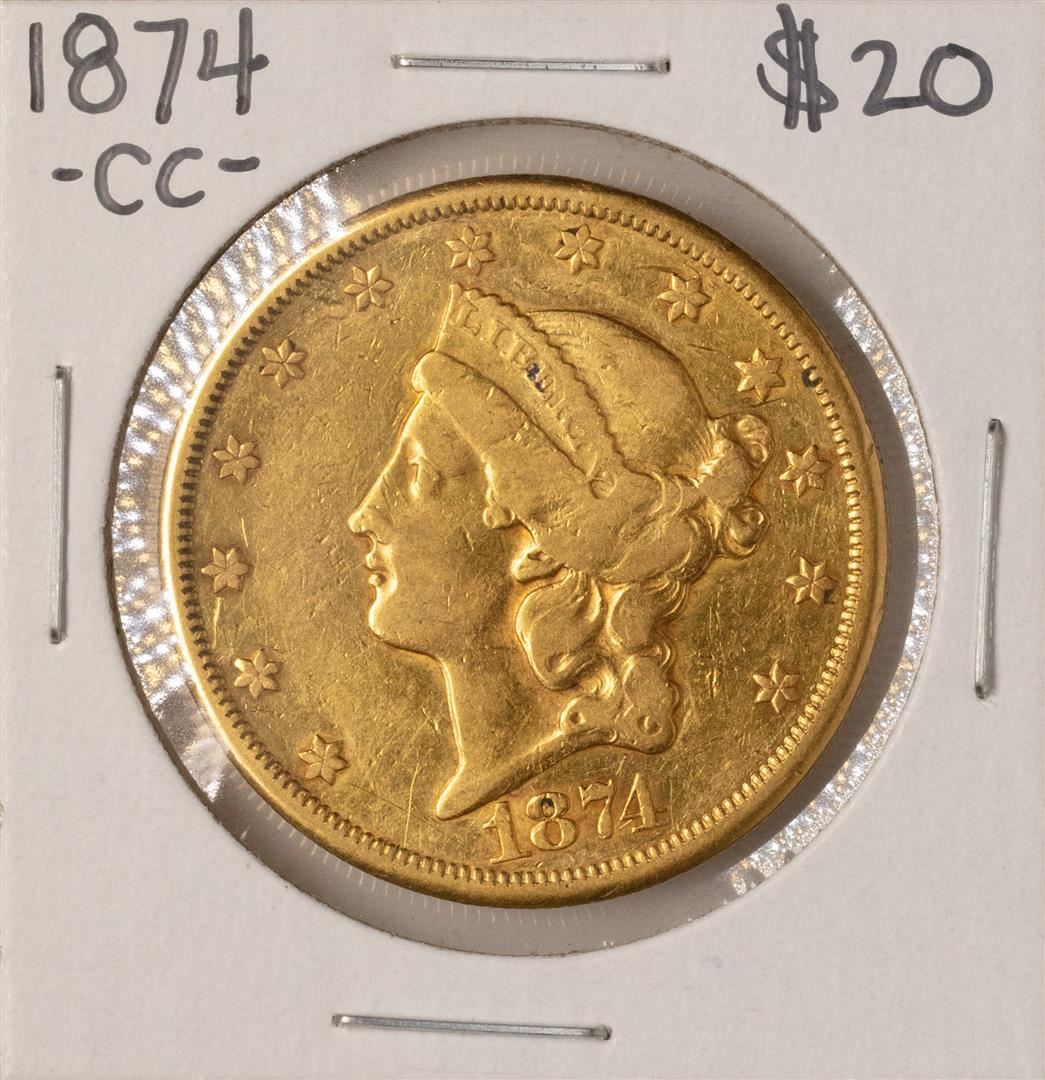 One 1874-CC $20 Liberty Head Double Eagle Gold Coin.