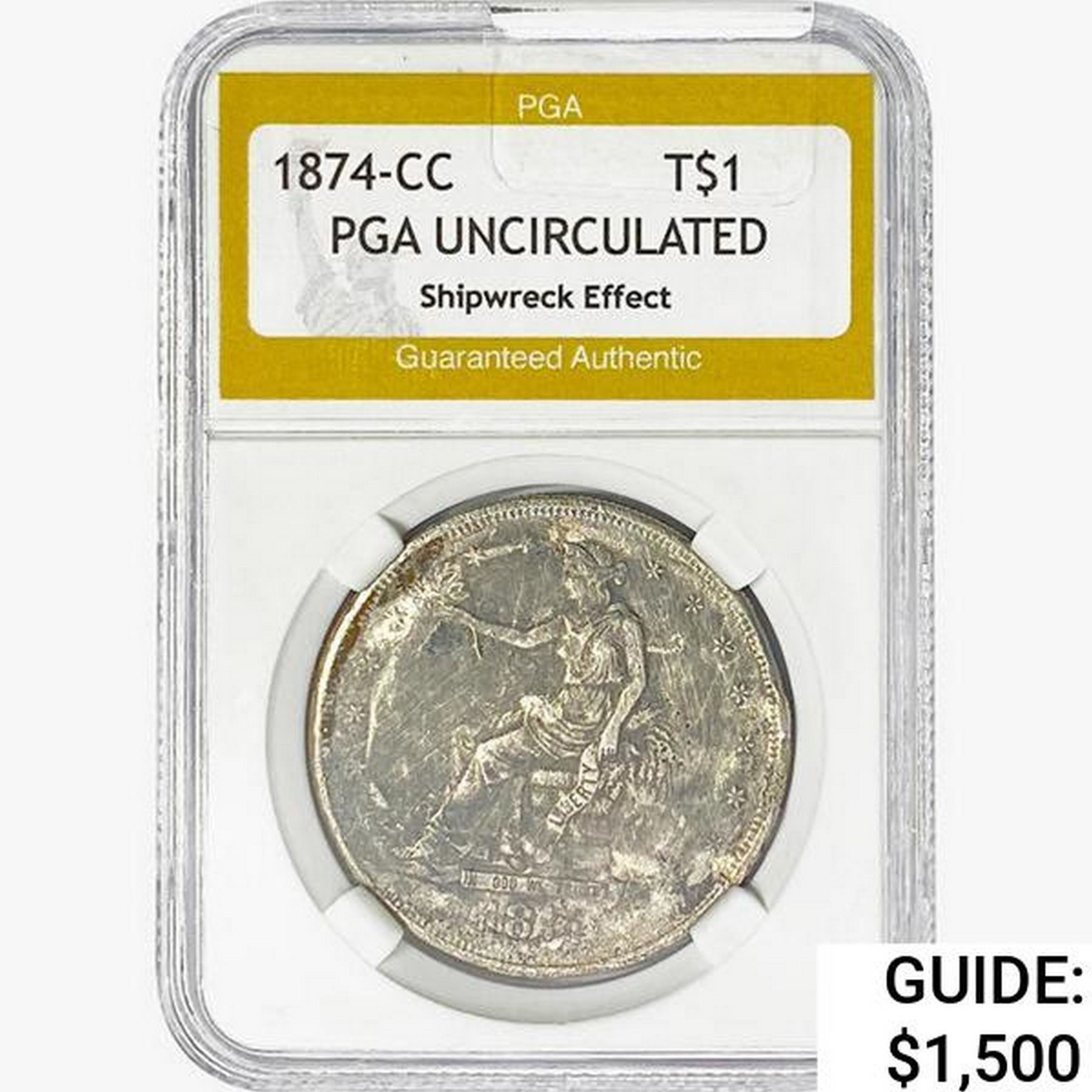 1874-CC Silver Trade Dollar PGA UNC Shipwreck Effect