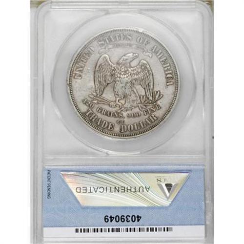 <B>1874-CC T$1 Chop Mark--Bent--ANACS. XF40 Details.</B></I> NGC Census: (0/0). PCGS Population (2/41). (#87035)<BR><BR><b>Shipping:</b> Coins & Currency (<a target="_blank" href="http://www.heritageauctions.com/common/shipping.php">view shipping information</a>)