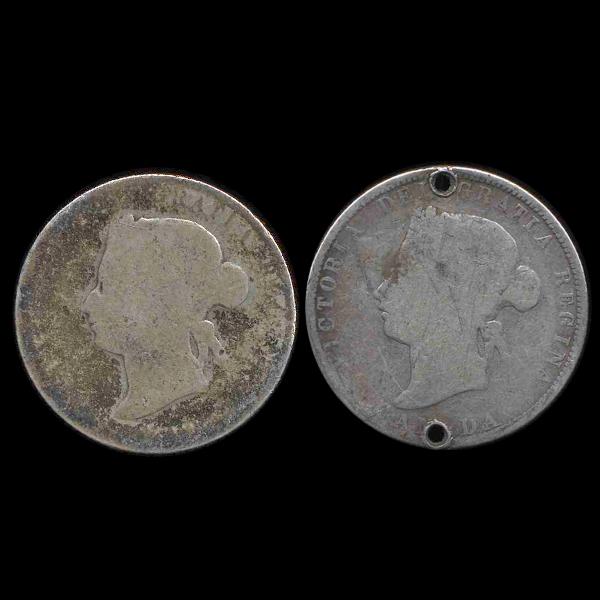 Nice scarce older pieces; 1 holed, 1 unreadable