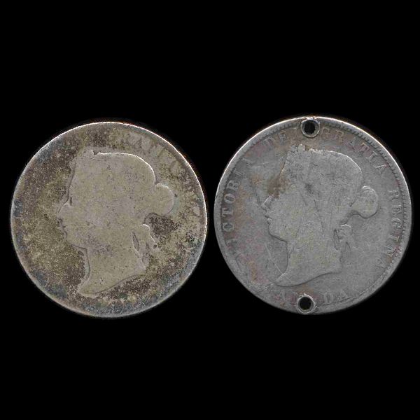 Nice scarce older pieces; 1 holed, 1 unreadable; 0.3 ounces silver