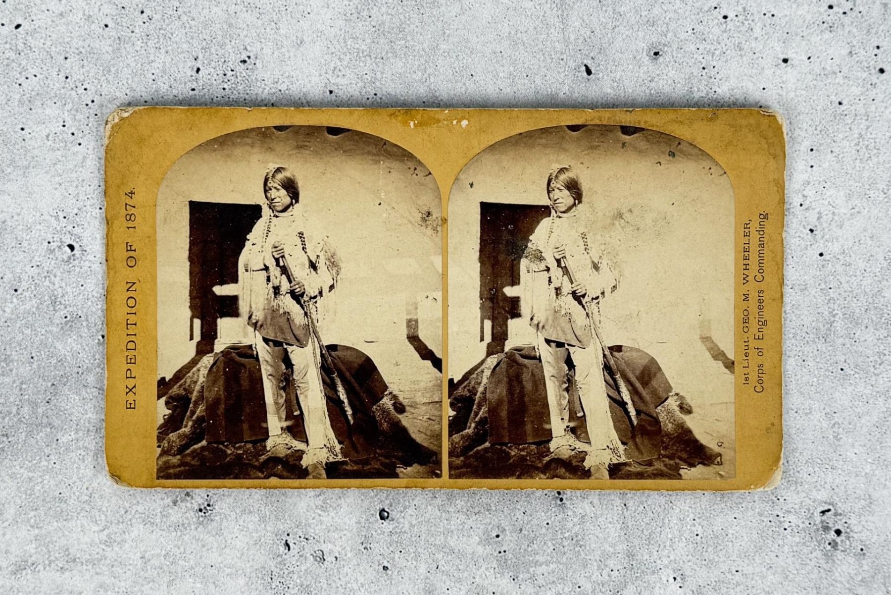 Timothy O'Sullivan commissioned by George Wheeler for the War Department, Corps of Engineers, U.S. Army. Shee-zah-nan-tan, Jicarilla Apache Brave in Characteristic Costume, Northern New Mexico