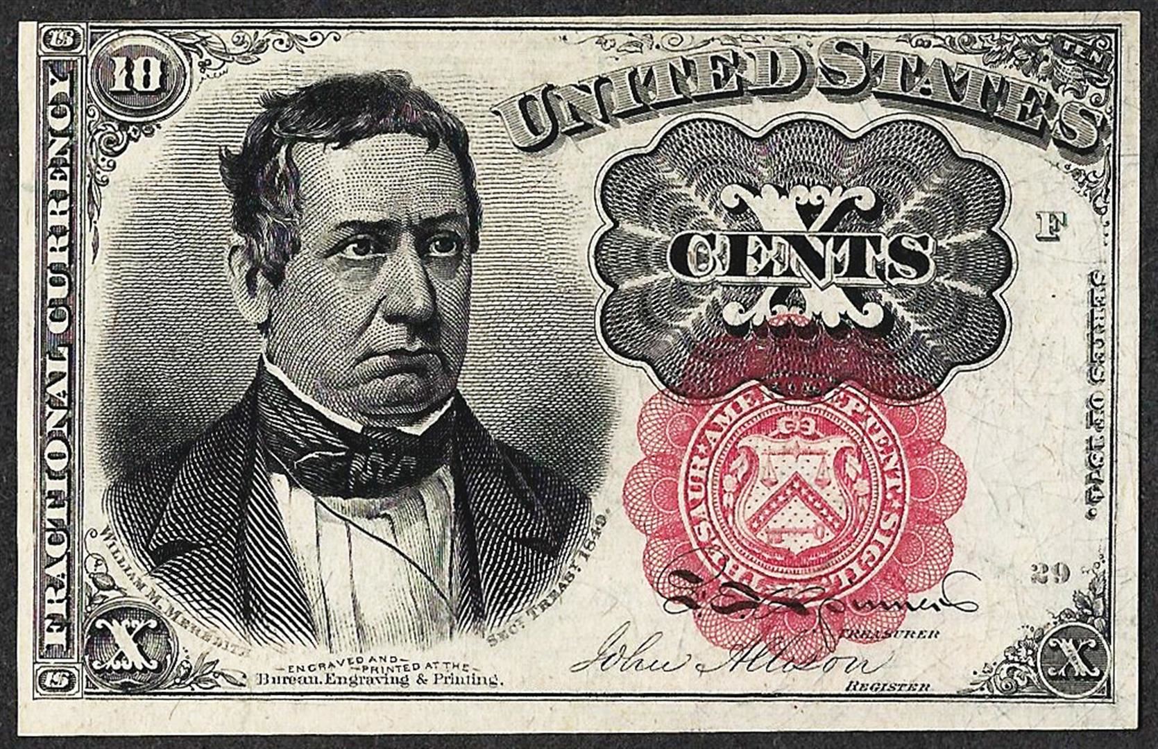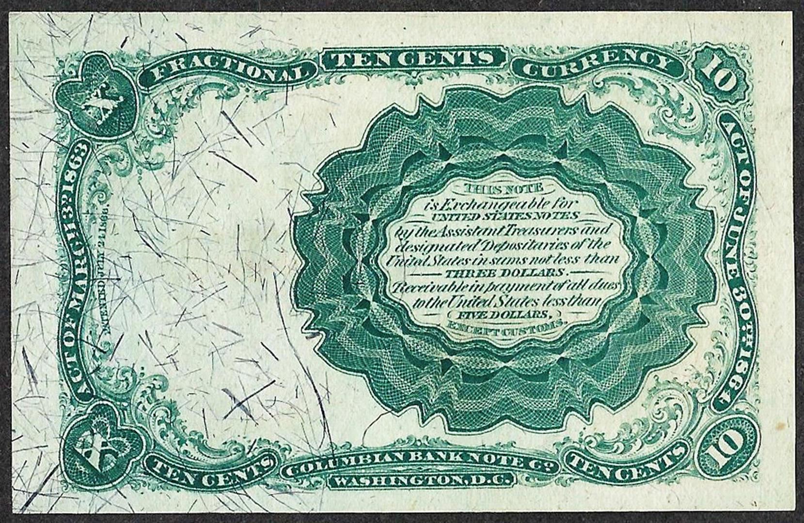 One 1874 Fifth Issue 10 Cent Fractional Currency Note.