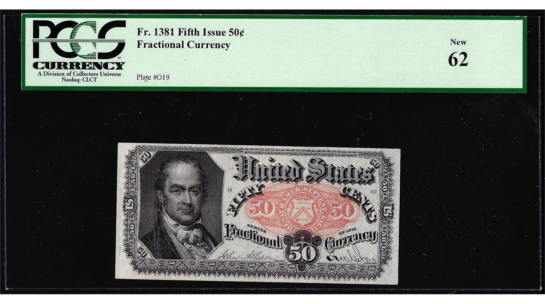 One 1874 Fifth Issue 50 Cent Fractional Currency Note Fr.1381 PCGS New 62. PCGS Graded.
