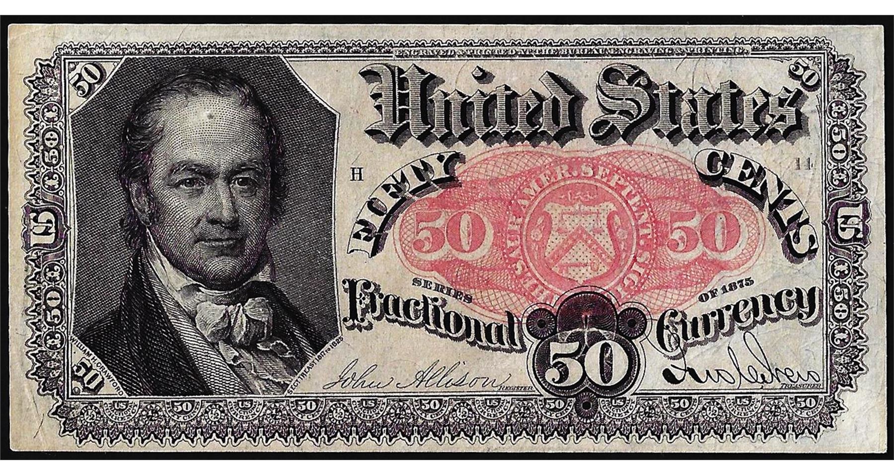 One 1874 Fifth Issue Fifty Cent Fractional Currency Note.