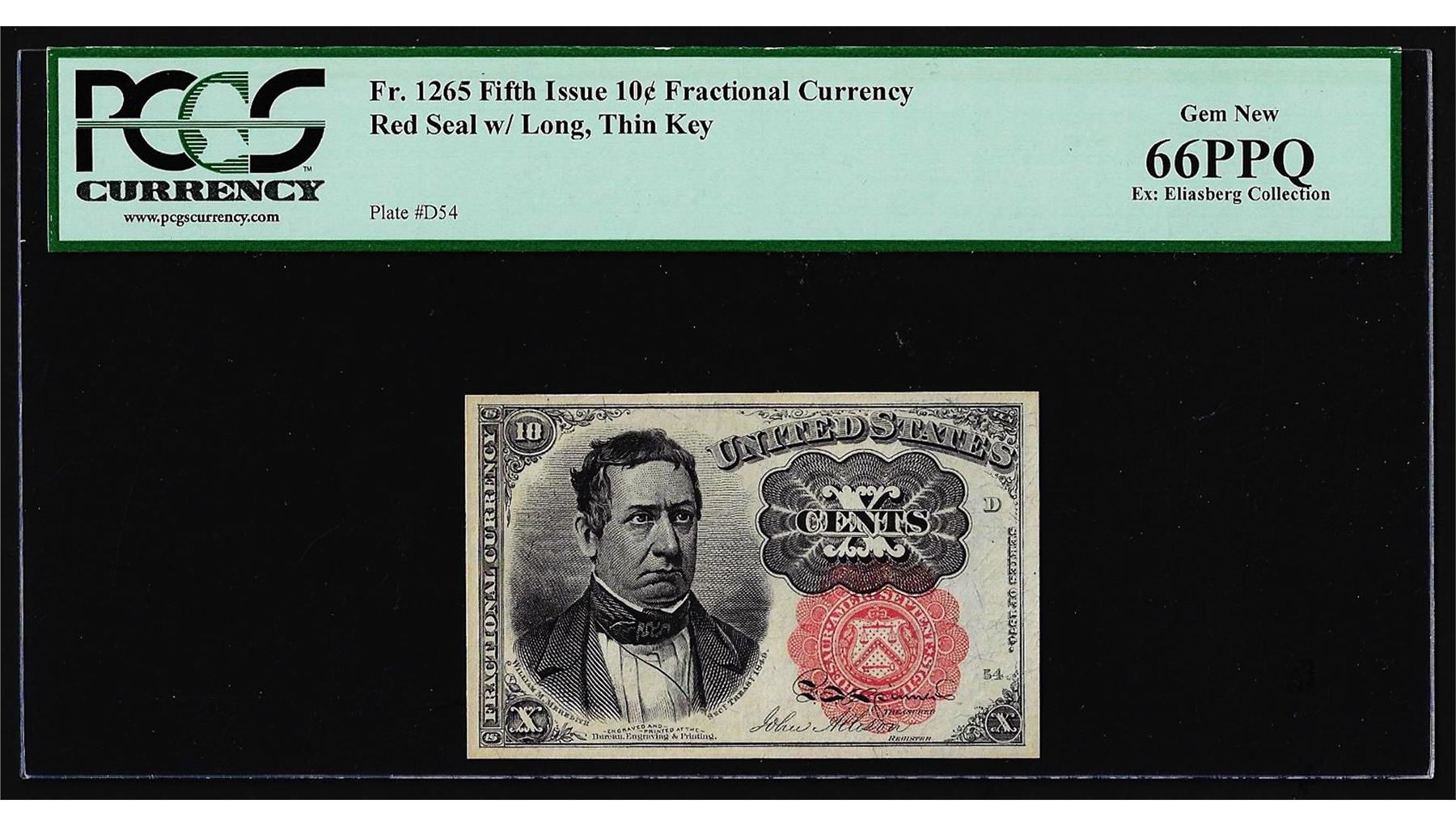 One 1874 Fifth Issue Ten Cent Fractional Currency Note Fr.1265 PCGS Gem New 66PPQ. PCGS Graded.