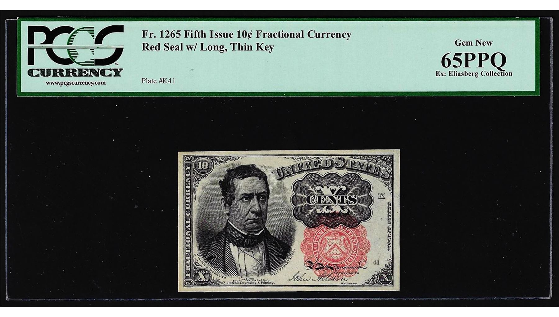 One 1874 Fifth Issue Ten Cent Fractional Currency Note PCGS Gem New 65PPQ. PCGS Graded.