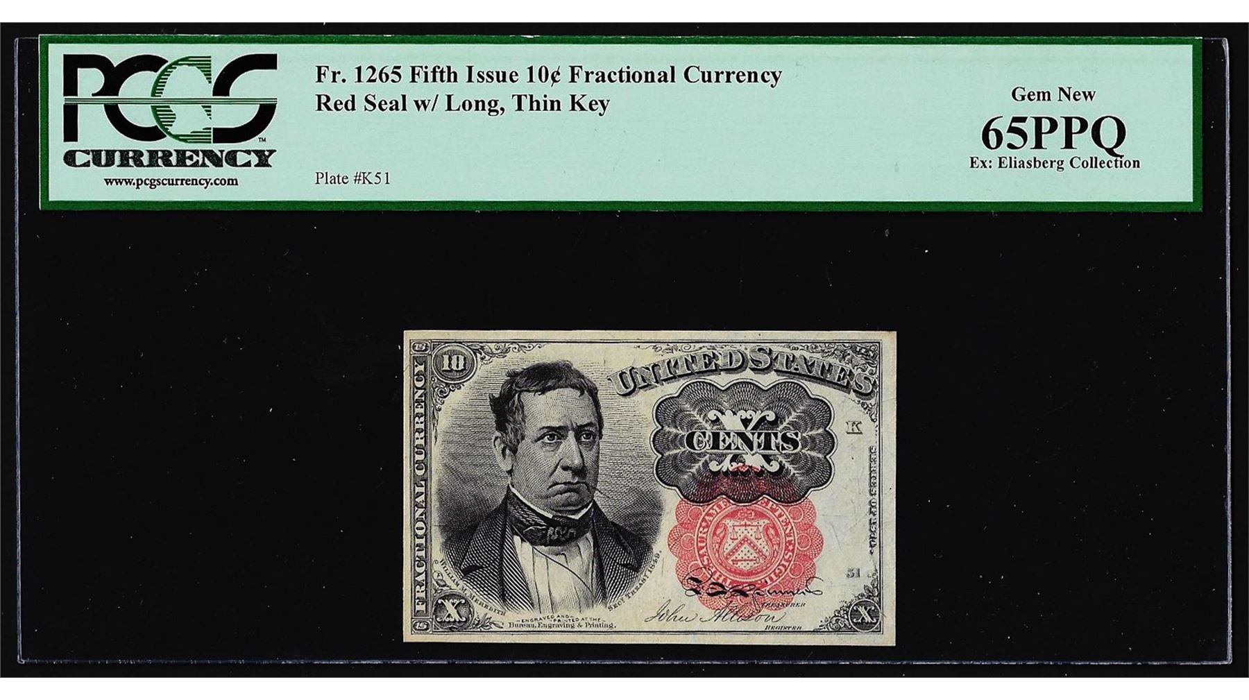 One 1874 Fifth Issue Ten Cent Fractional Currency Note PCGS Gem New 65PPQ. PCGS Graded.