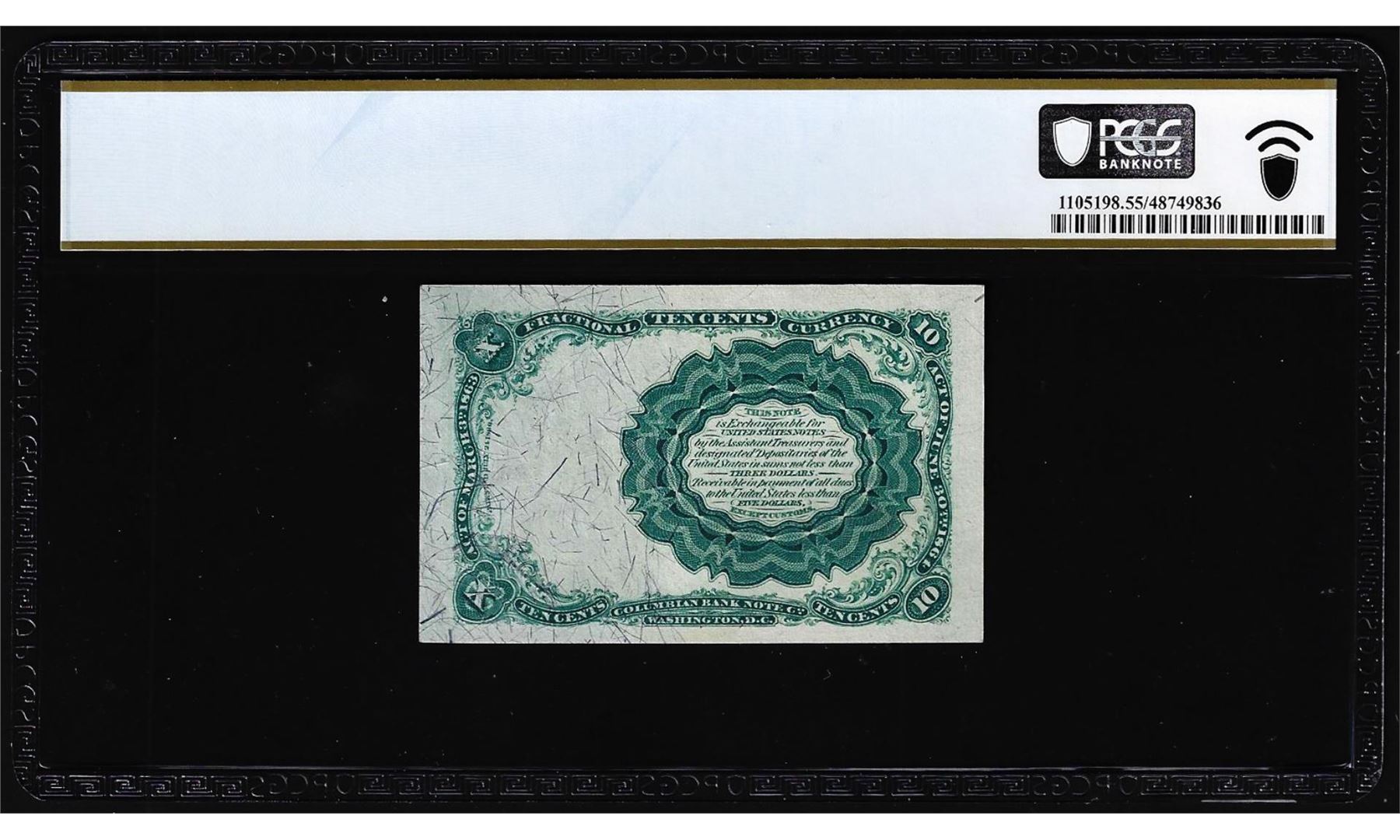 1874 Fifth Issue Ten Cents Fractional Currency Note Fr.1266 PCGS About Unc 55PPQ