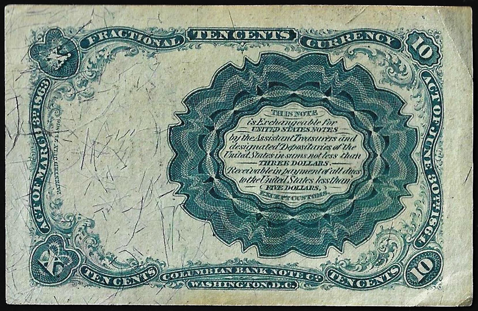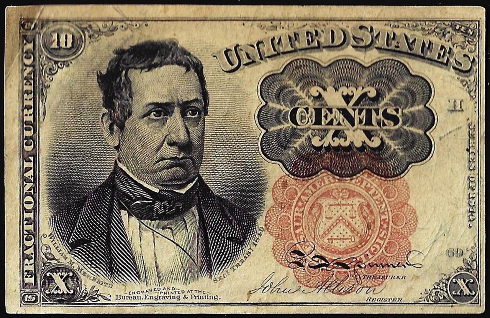 One 1874 Fifth Issue Ten Cents Fractional Currency Note.