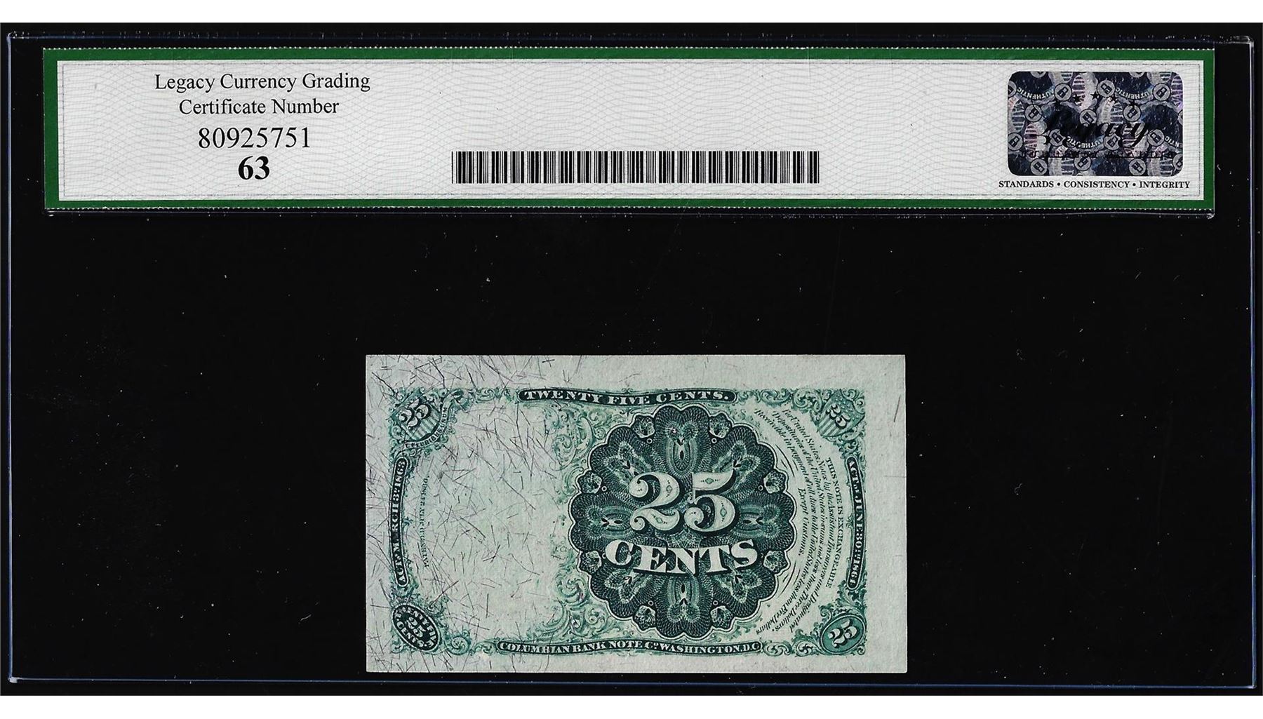 One 1874 Fifth Issue Twenty-Five Cent Fractional Note Fr.1309 Legacy Choice New 63. Legacy Graded.