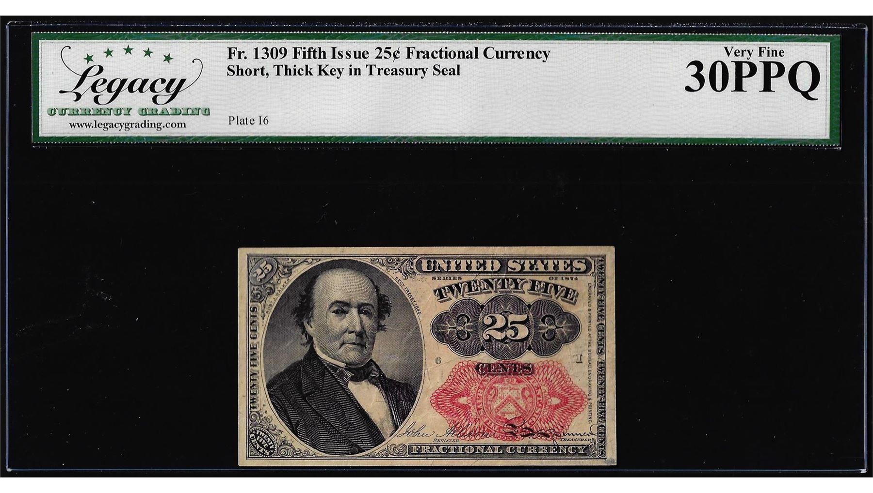 1874 Fifth Issue Twenty-Five Cent Fractional Note Fr.1309 Legacy Very Fine 30PPQ