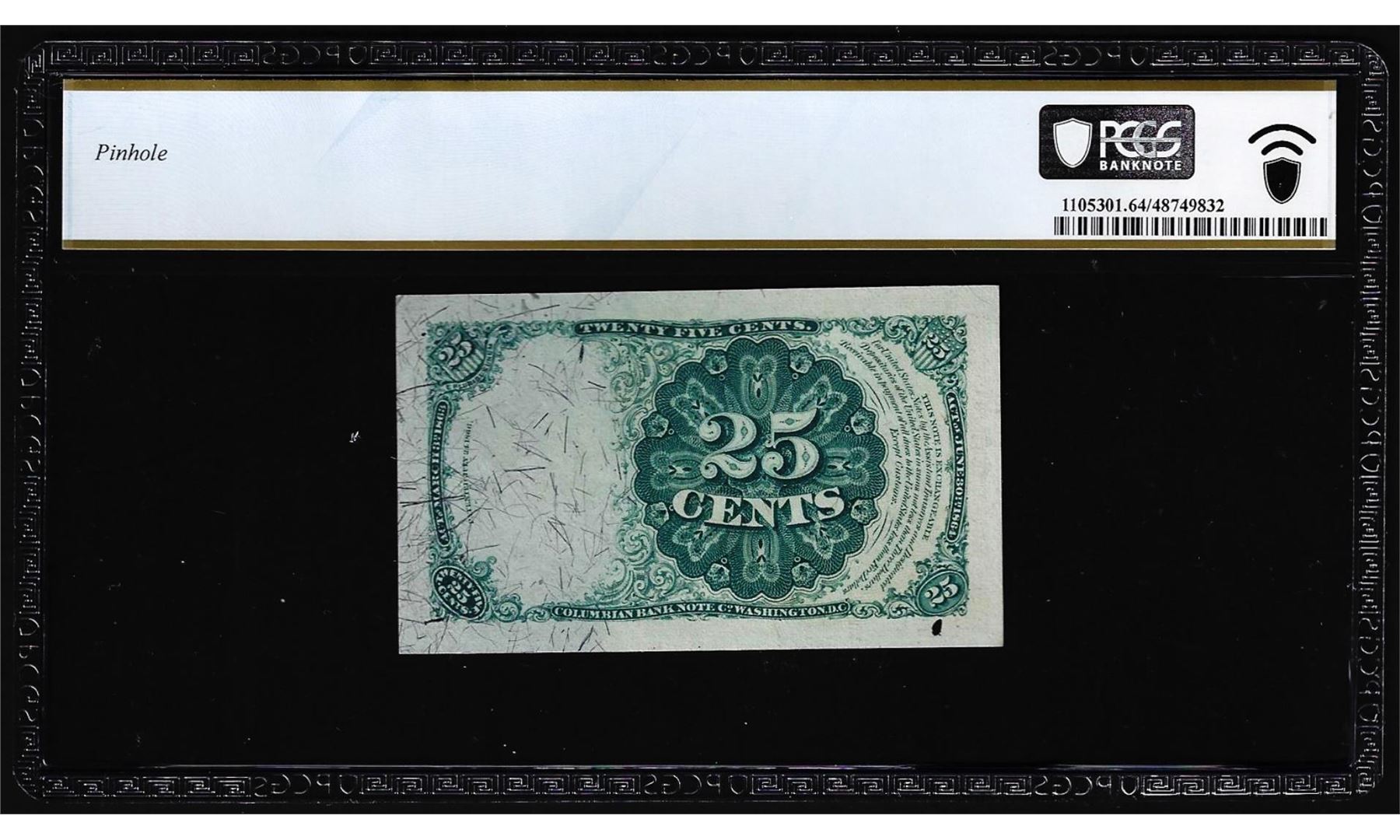 1874 Fifth Issue Twenty-Five Cents Fractional Currency Note Fr.1308 PCGS Choice Unc 64