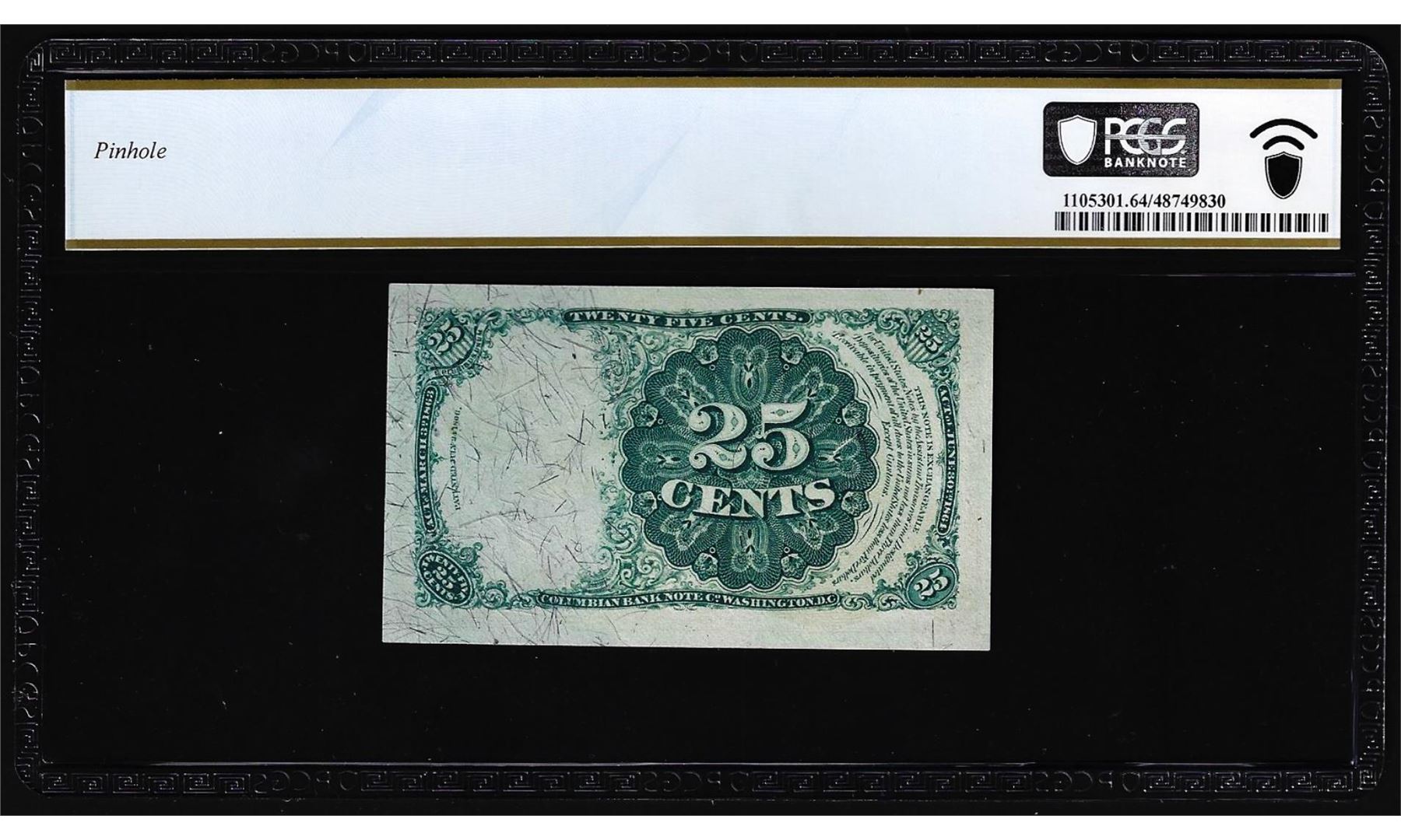 1874 Fifth Issue Twenty-Five Cents Fractional Currency Note Fr.1308 PCGS Choice Unc 64