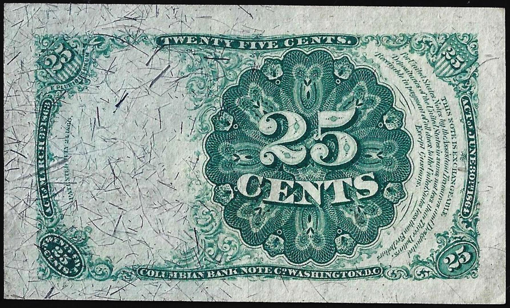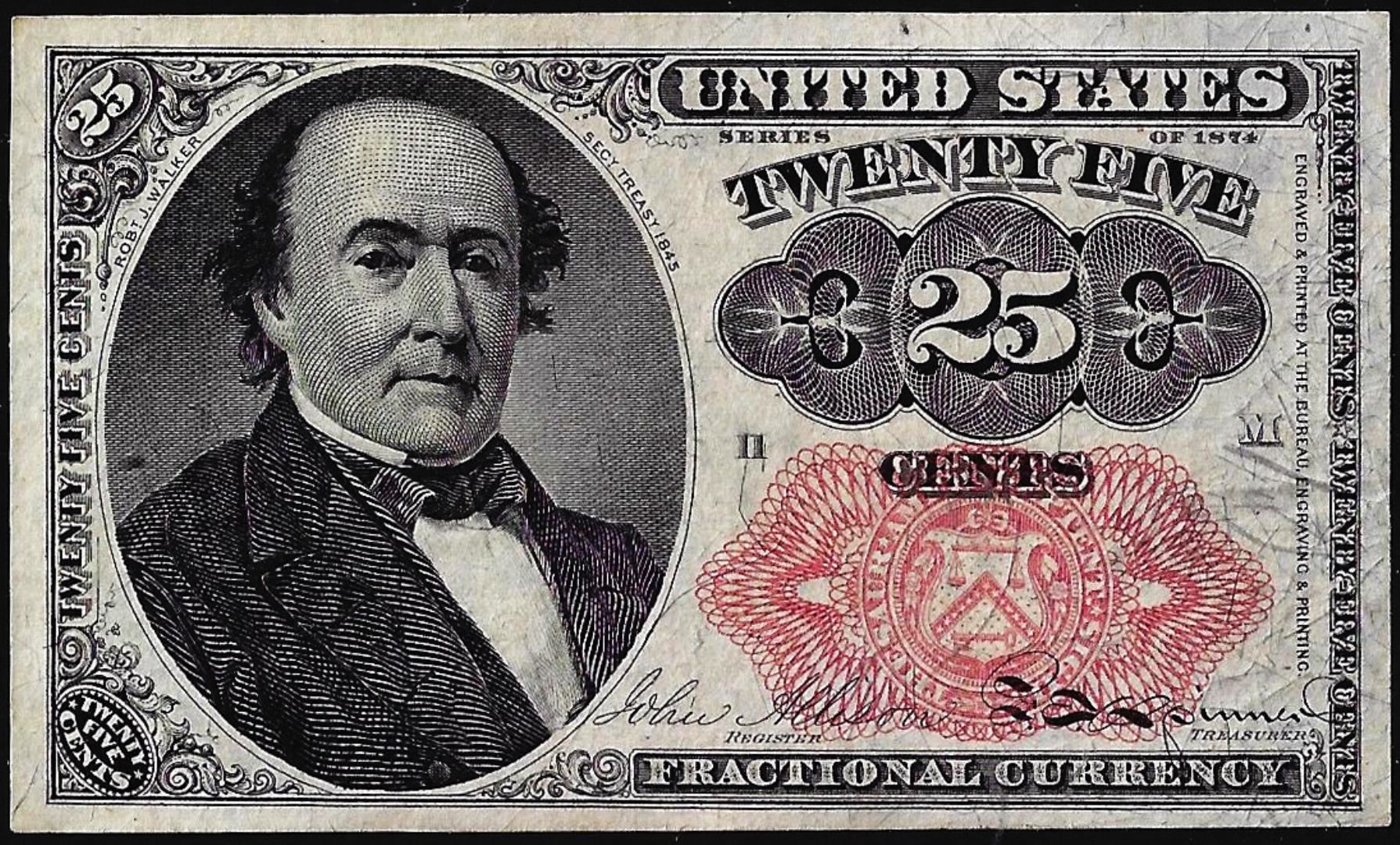 One 1874 Fifth Issue Twenty-Five Cents Fractional Currency Note.