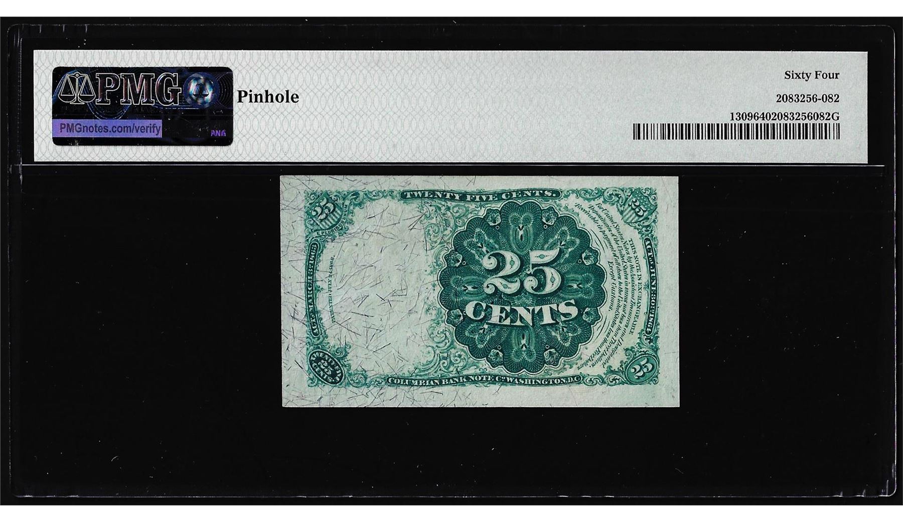 One 1874 Fifth Issue Twenty-Five Cents Fractional Note Fr.1309 PMG Choice Uncirculated 64. PMG Certified.