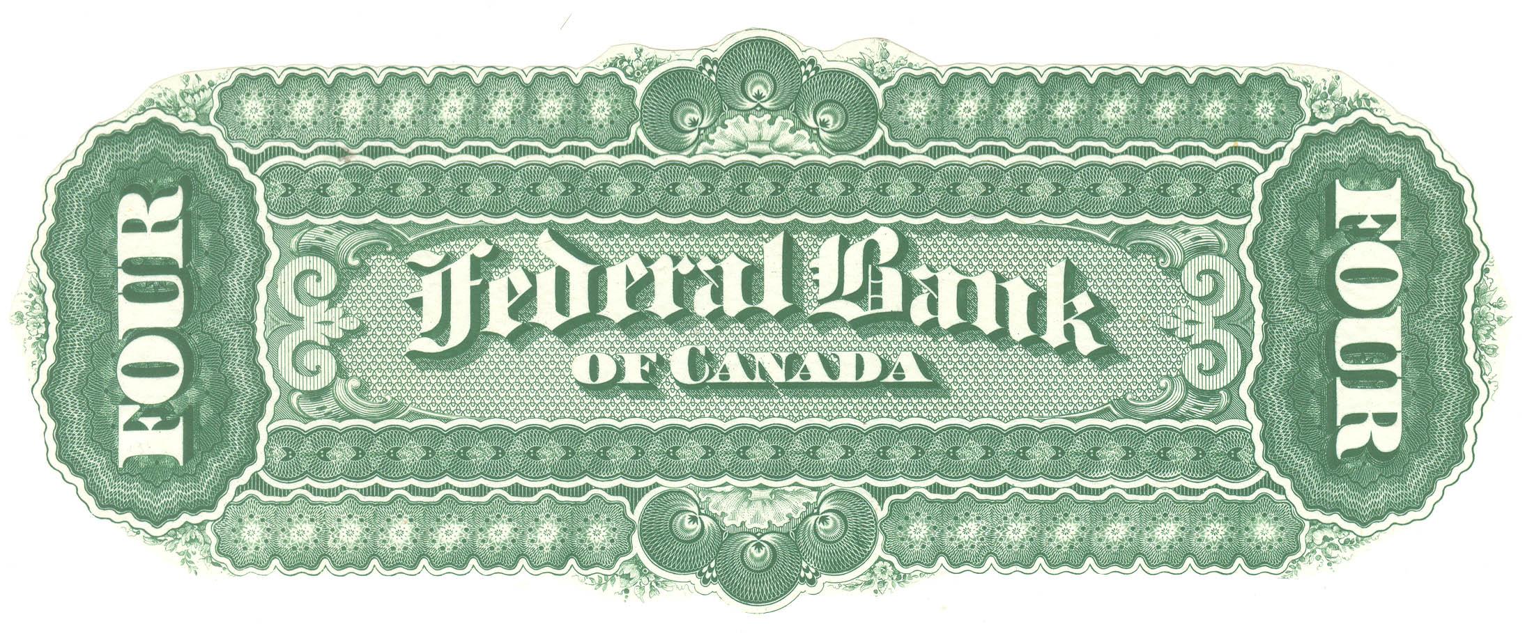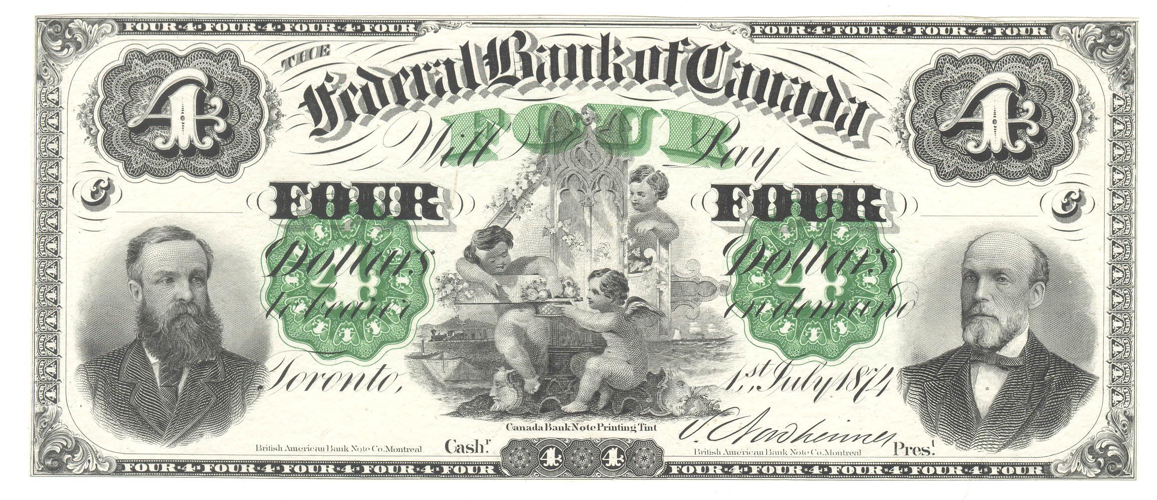 1874 Four Dollar Federal Bank of Canada, Face and Back Proof, CH 300-10-02P.