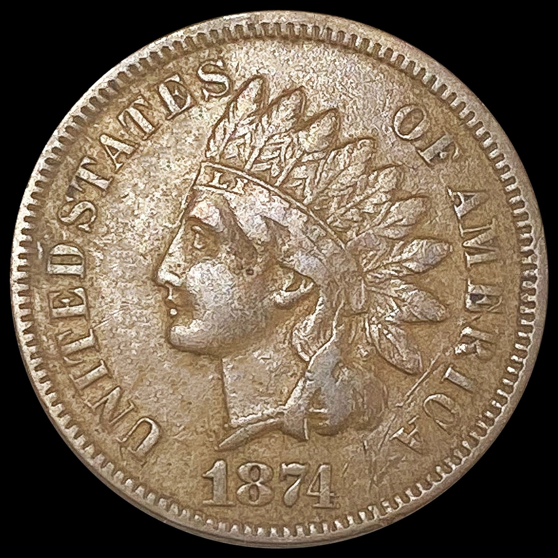 1874 Indian Head Cent LIGHTLY CIRCULATED