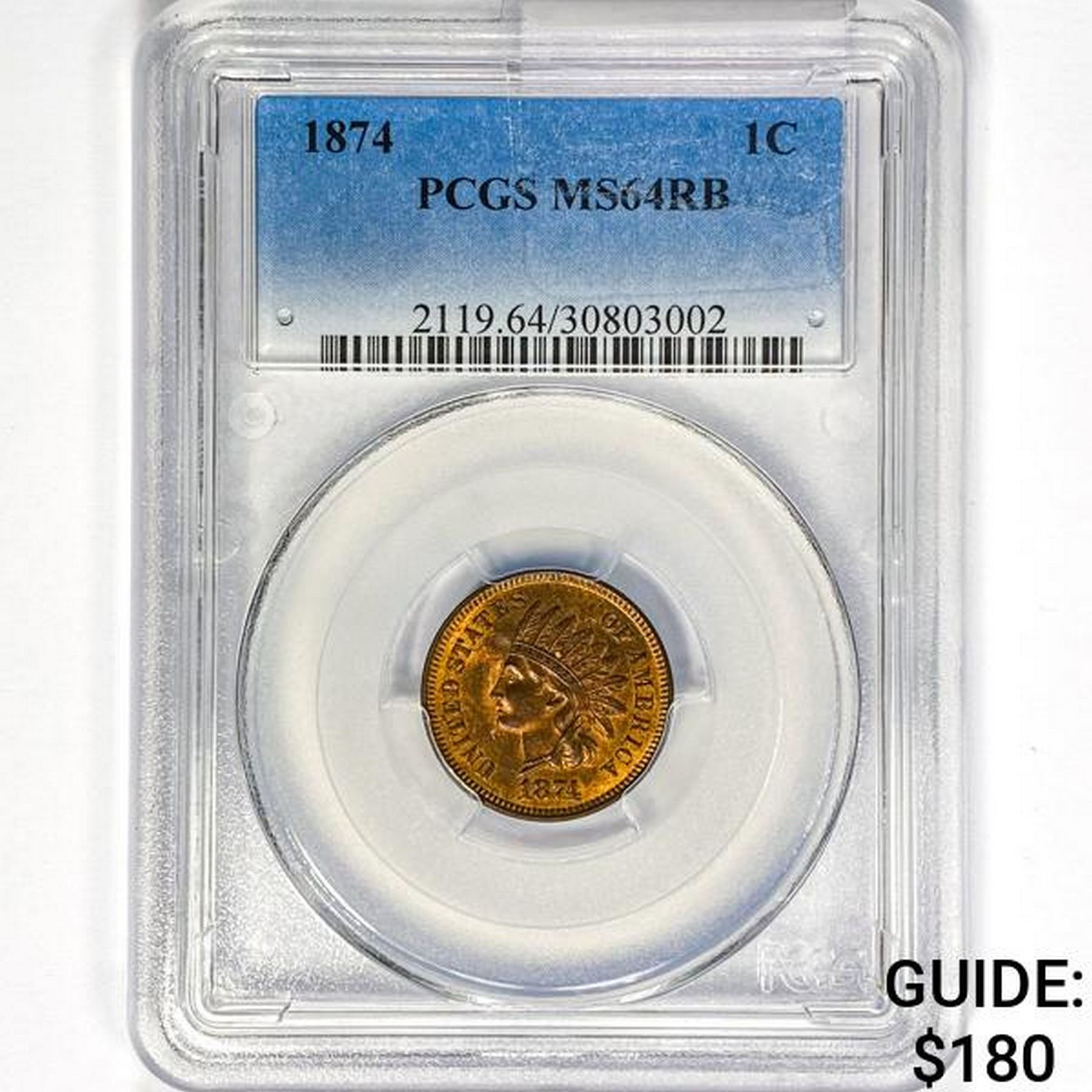 1874 Indian Head Cent PCGS MS64 RB