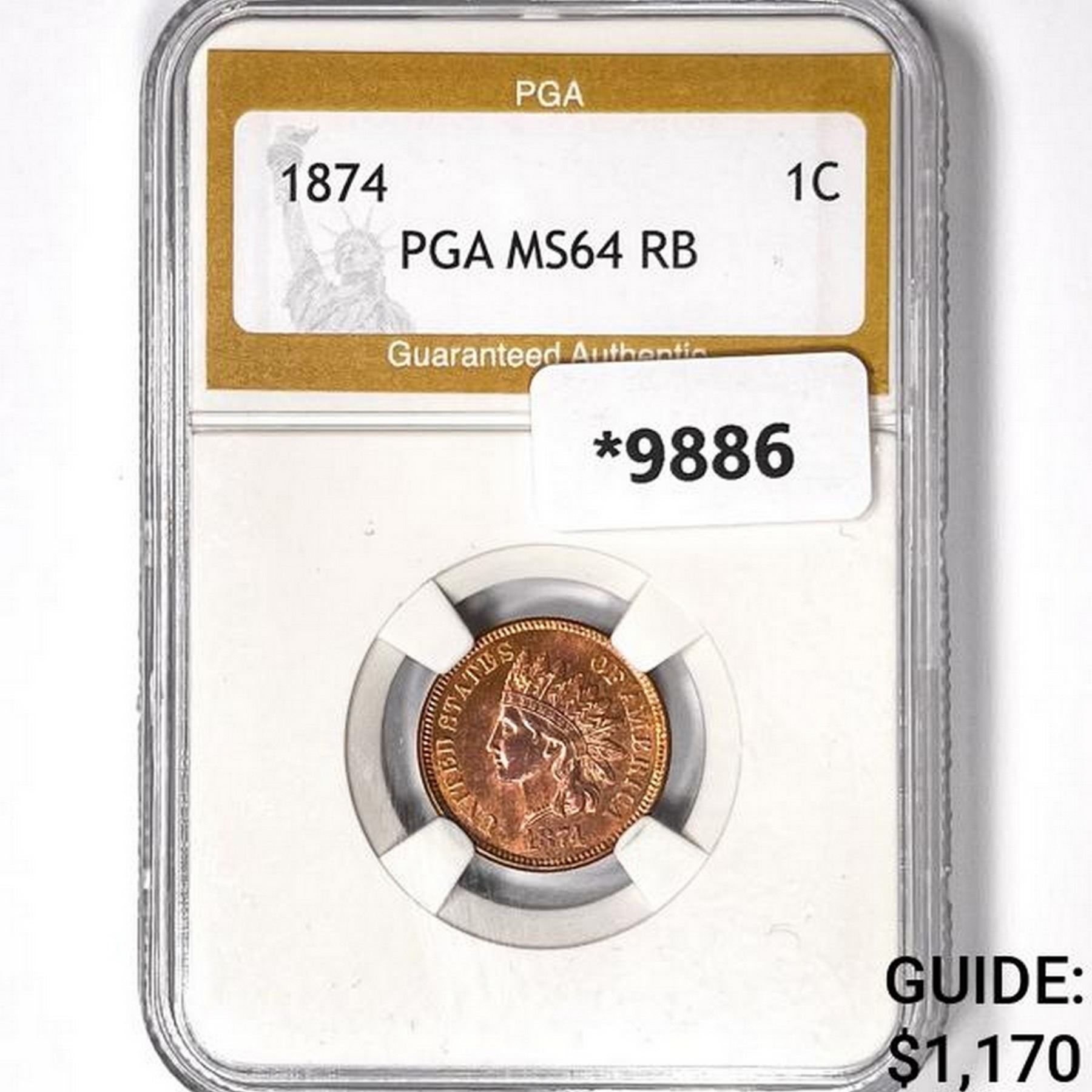 1874 Indian Head Cent PGA MS64 RB