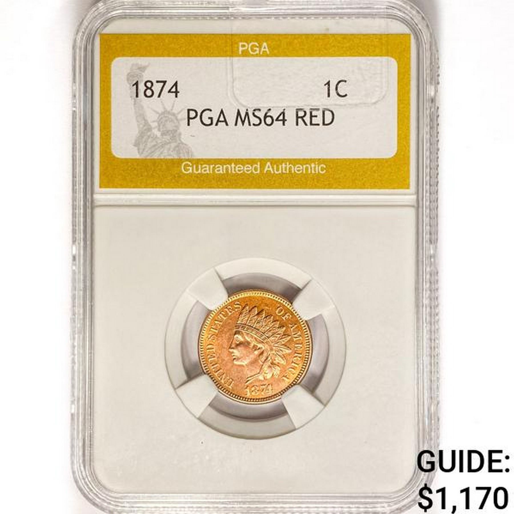 1874 Indian Head Cent PGA MS64 RED