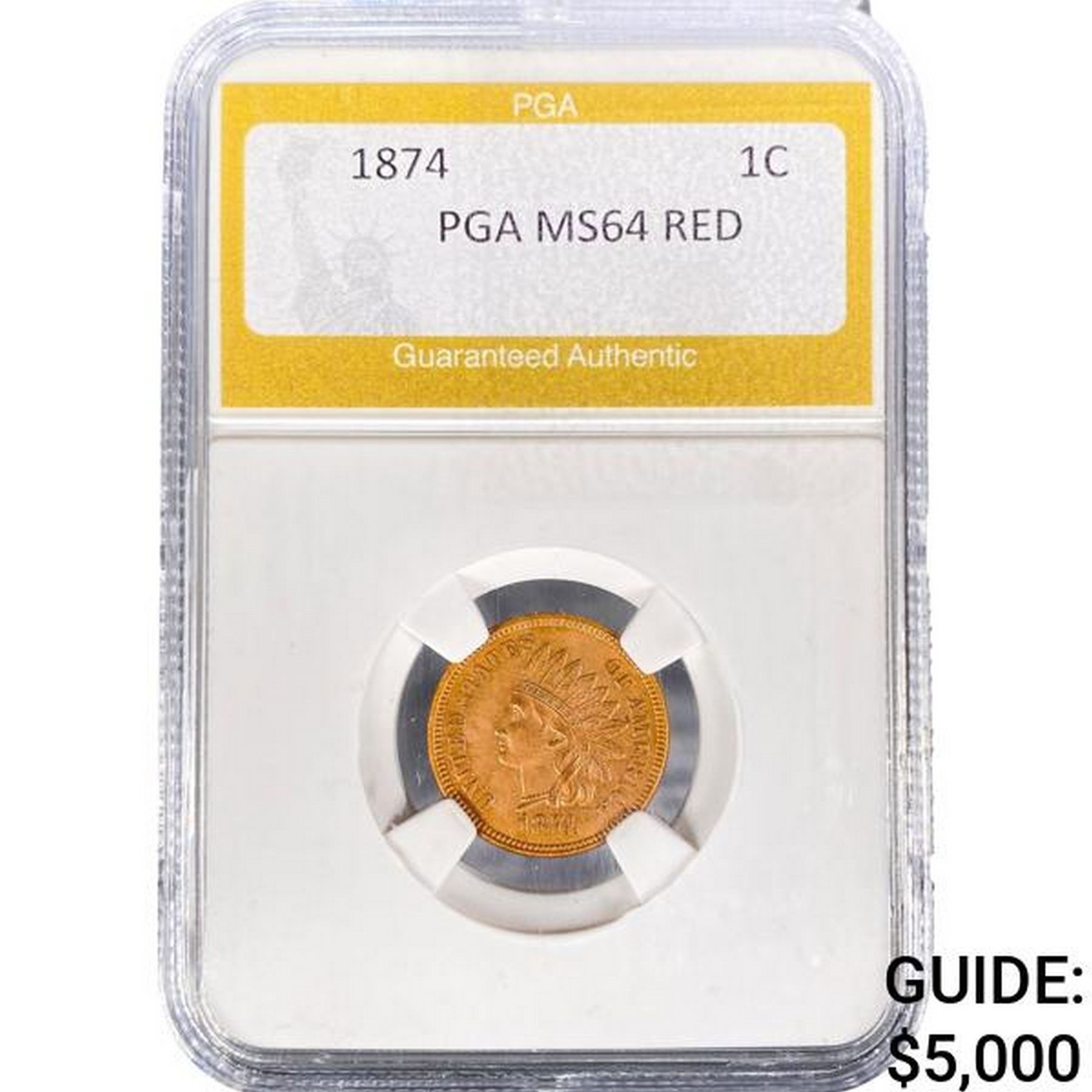 1874 Indian Head Cent PGA MS64 Red