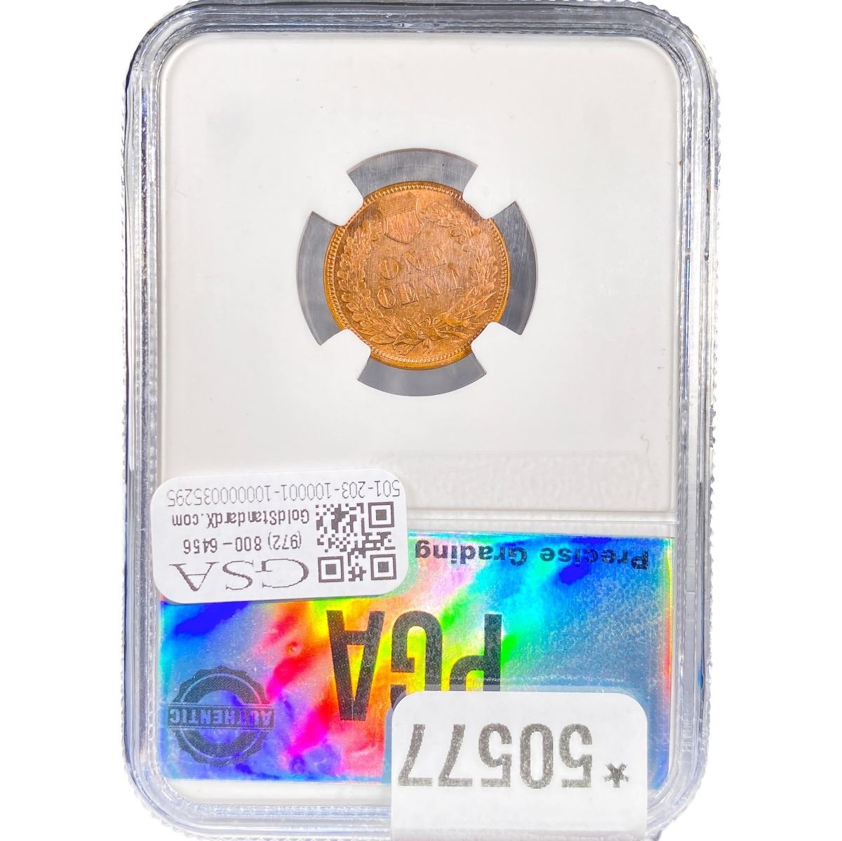 e. Coins sold referencing a third-party grading service are sold “AS IS” without any express or implied warranty, except for a guarantee by GSA that they are genuine. Removal or alteration of the holder, voids all of Bidder’s claims concerning that Product. Certain warranties may be available from the grading services and Bidders are referred to them for further details: Numismatic Guaranty Corporation (NGC), PO Box 4776, Sarasota, FL 34230, www.ngccoin.com/services/writtenguarantee.asp; Professional Coin Grading Services (PCGS), PO Box 9458, Newport Beach, CA 92658, www.pcgs.com/guarantee.html; ANACS, 6555 S. Kenton St., Ste. 303, Englewood, CO 80111; and Independent Coin Grading Co. (ICG), 7901 East Bellview, Ave., Suite 50, Englewood, CO 80111.