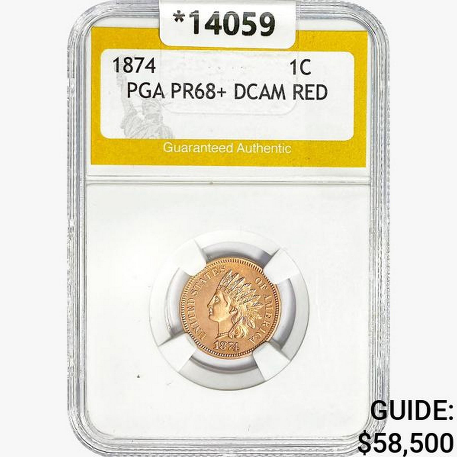 1874 Indian Head Cent PGA PR68+ DCAM RED