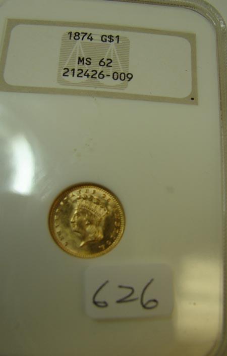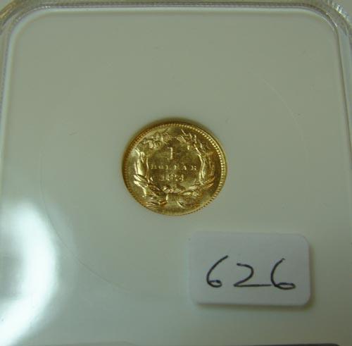 1874 Indian Princess $1.00 Gold Coin NGC MS62