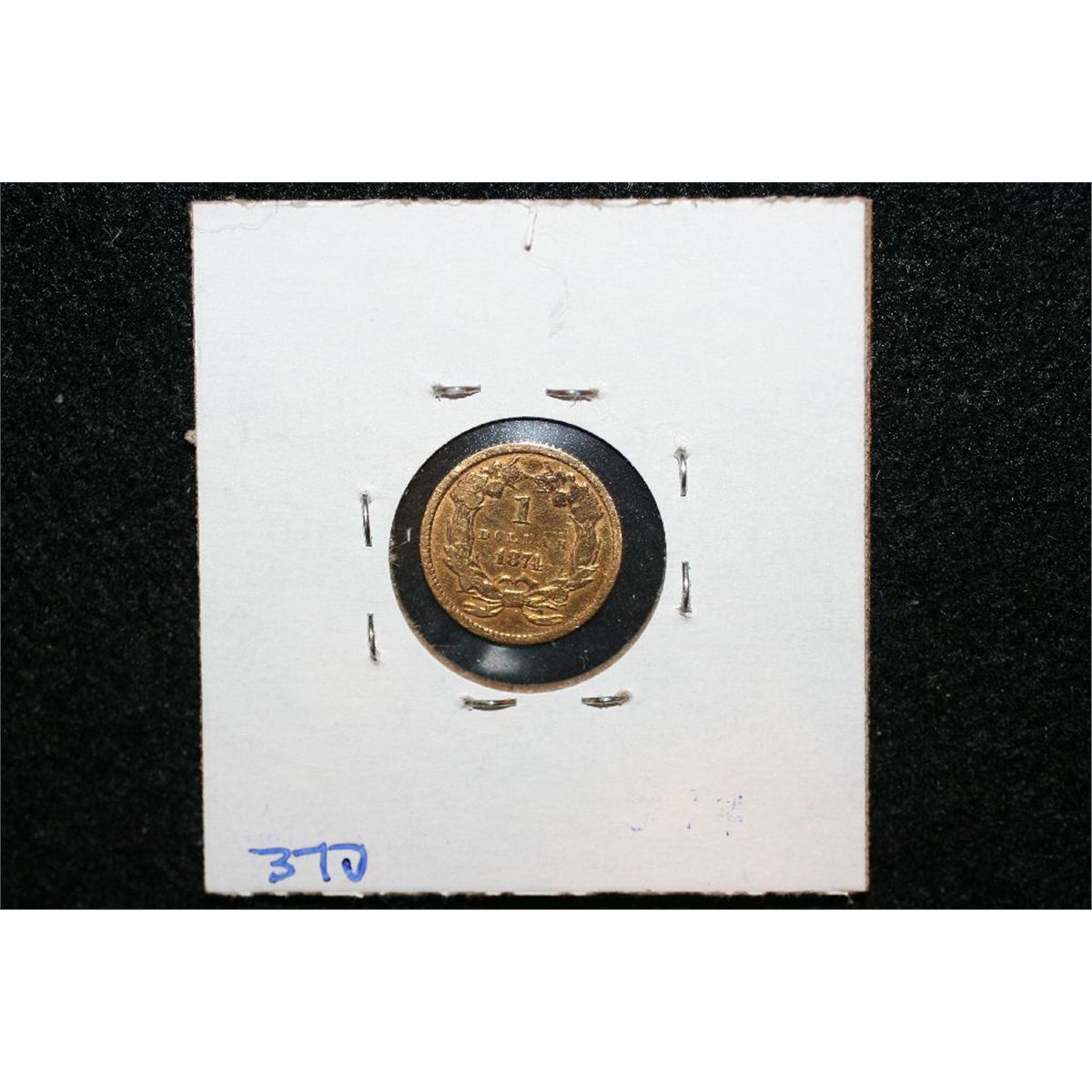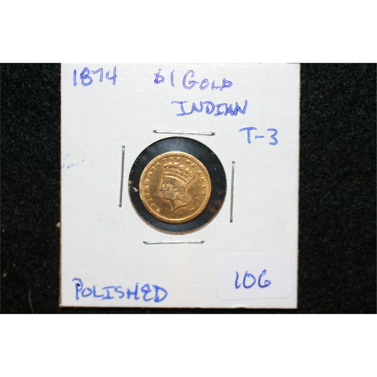1874 Indian Princess $1 Gold Coin, T-3 Polished