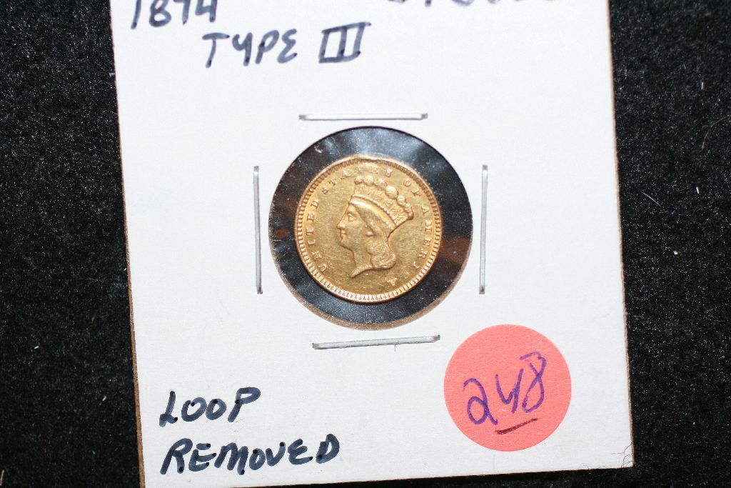 1874 Indian Princess $1 Gold Coin, Type III, Loop Removed