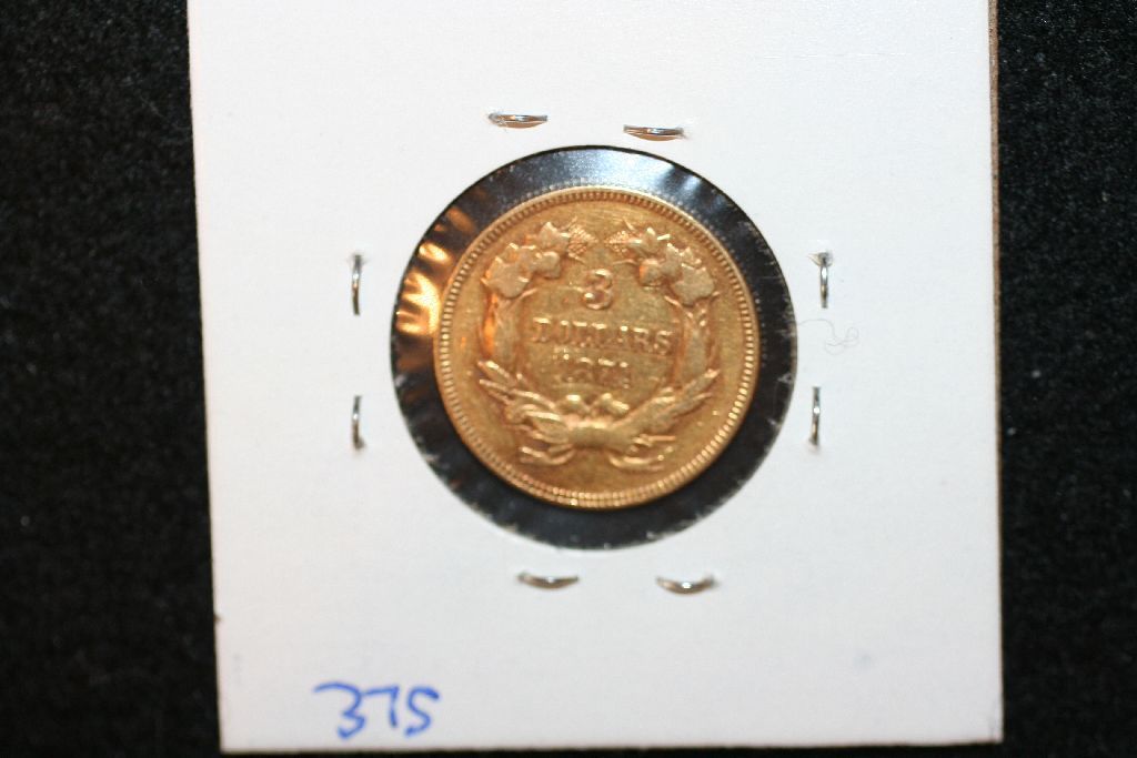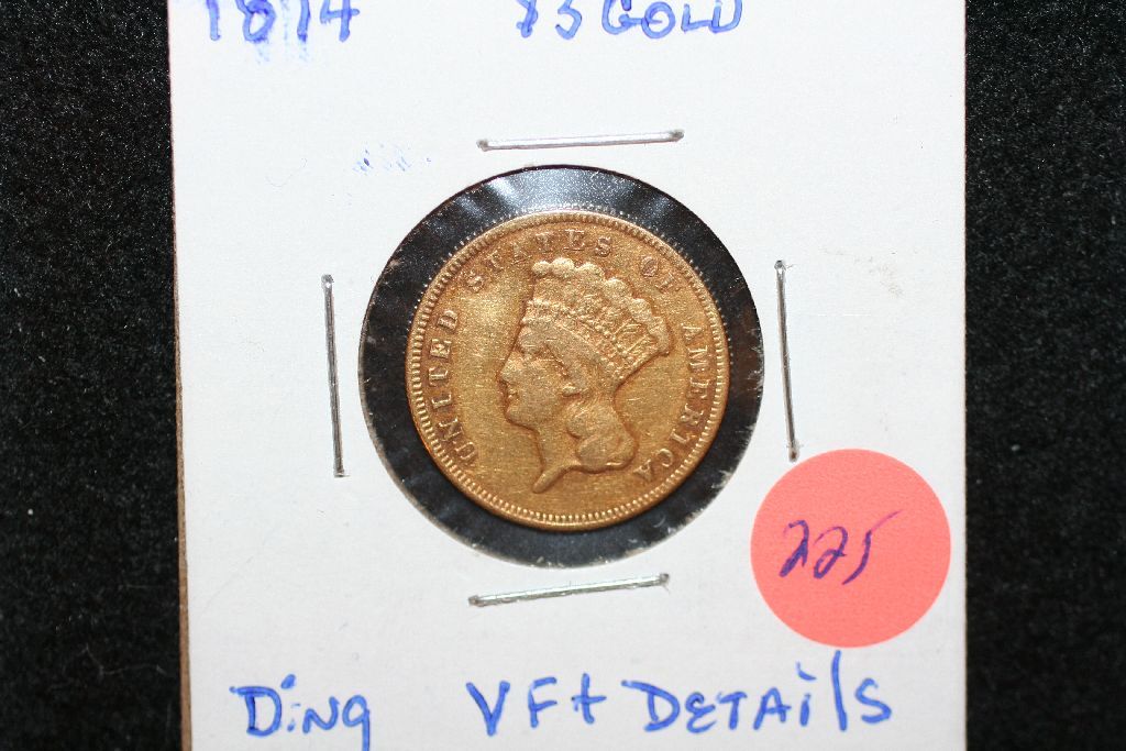 1874 Indian Princess $3 Gold Coin, Ding, VF+ Details