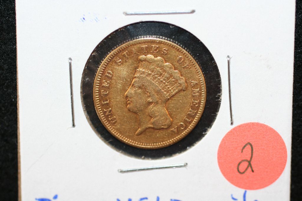 1874 Indian Princess $3 Gold Coin, VF+ Details, Ding