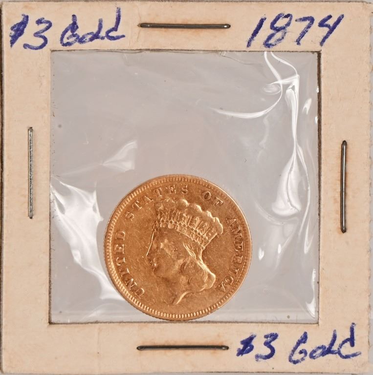 1874 Indian Princess Head $3 Gold Coin