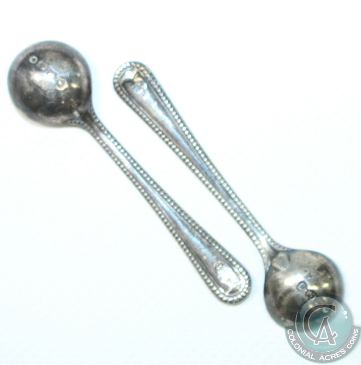 1874 'London' Charles Stuart Harris Sterling Silver Salt Spoons. Spoons contain an attracted beaded border design. Measure 2 3/4" in length. 2pcs.