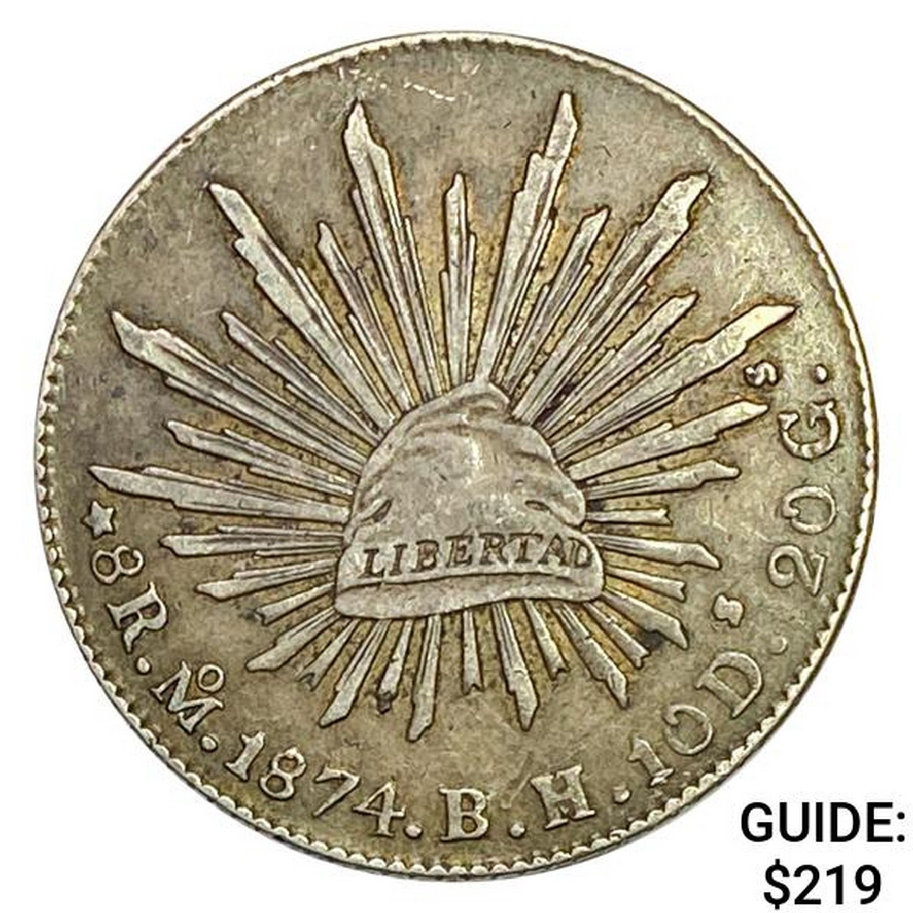 1874 Mo BH Mexico Silver 8 Reales Cap&Ray XF