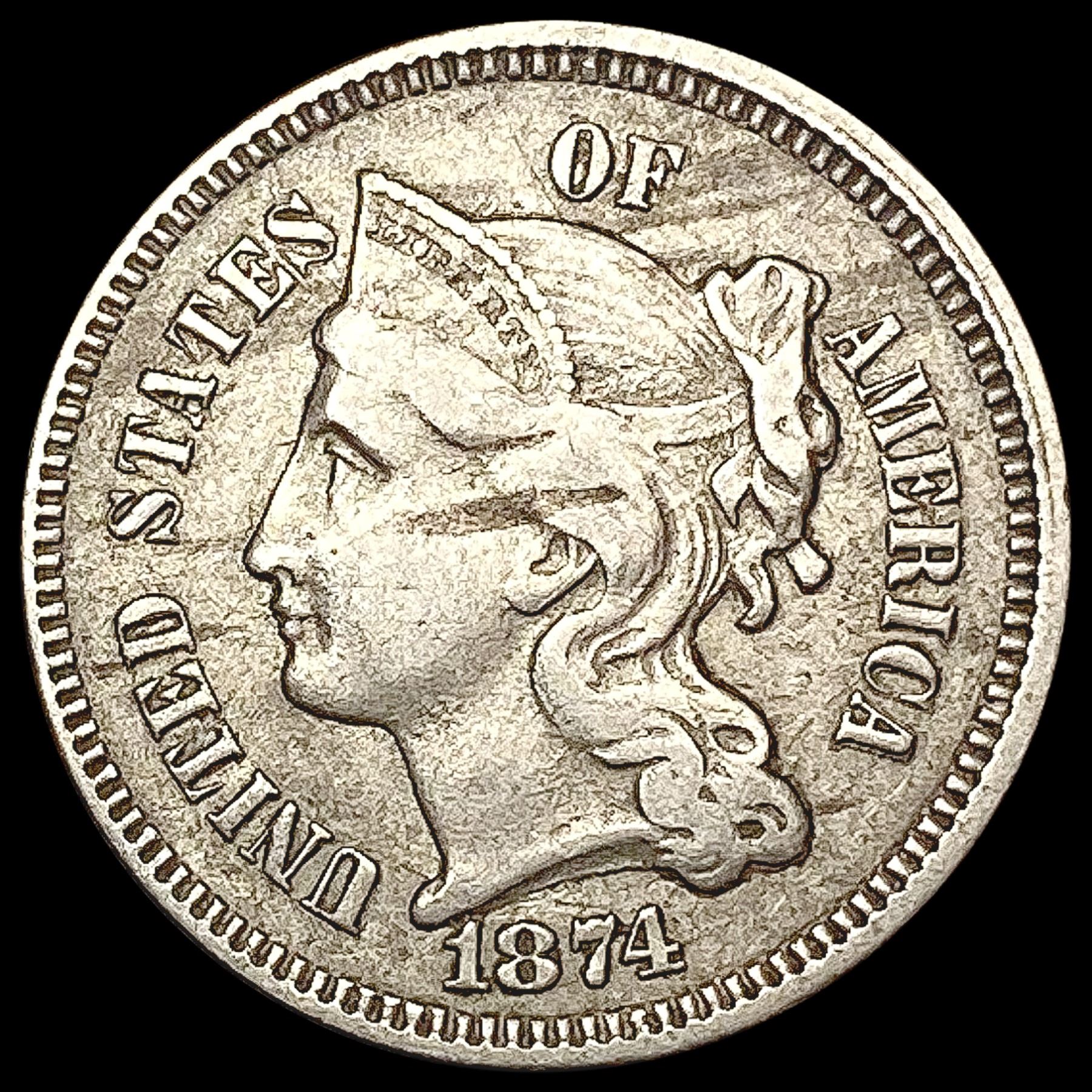 1874 Nickel Three Cent NEARLY UNCIRCULATED