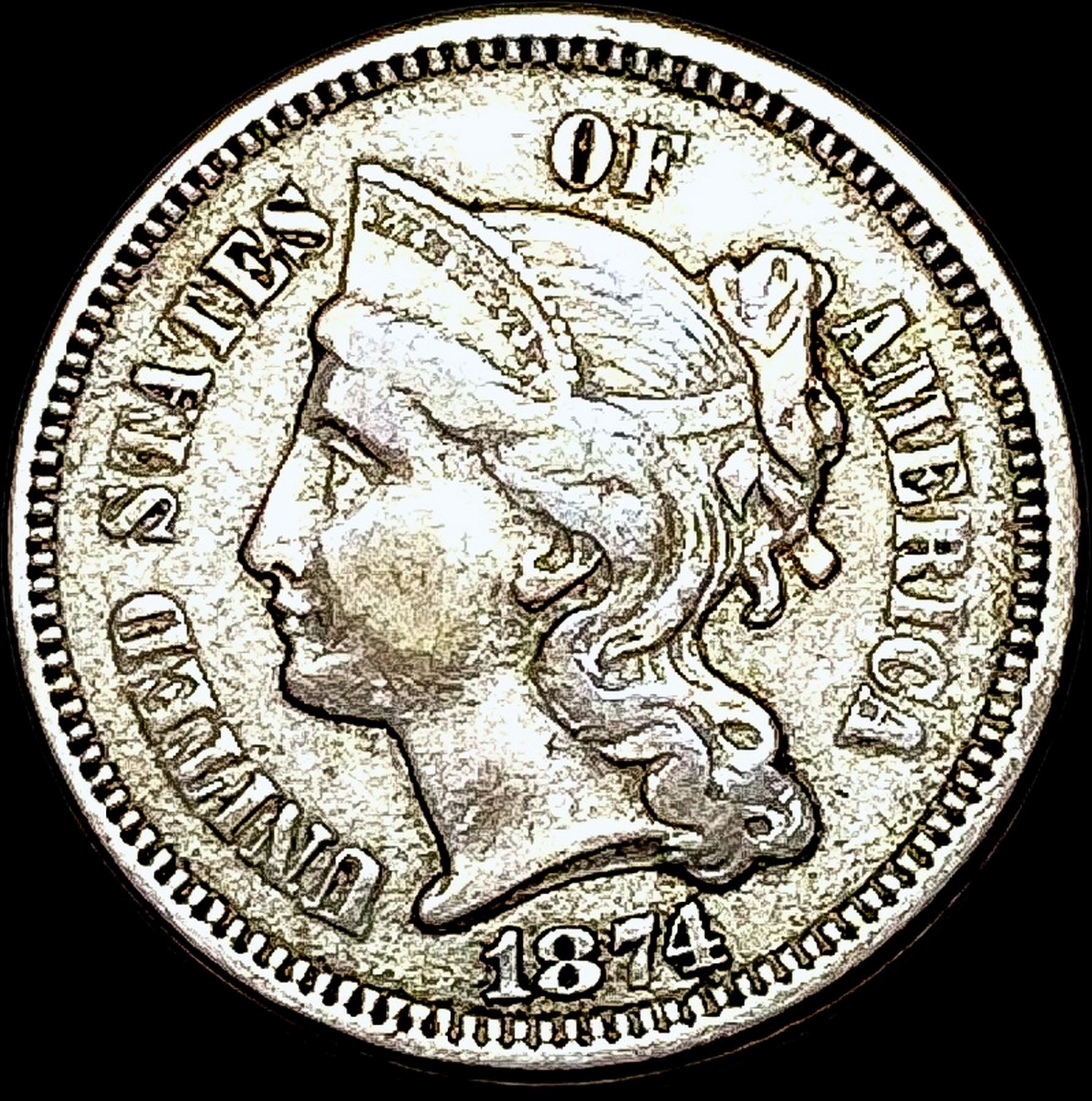 1874 Nickel Three-Cent Piece NEARLY UNCIRCULATED
