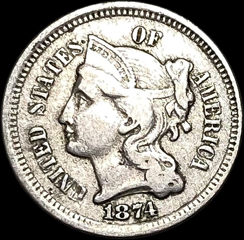 1874 Nickel Three-Cent Piece NEARLY UNCIRCULATED