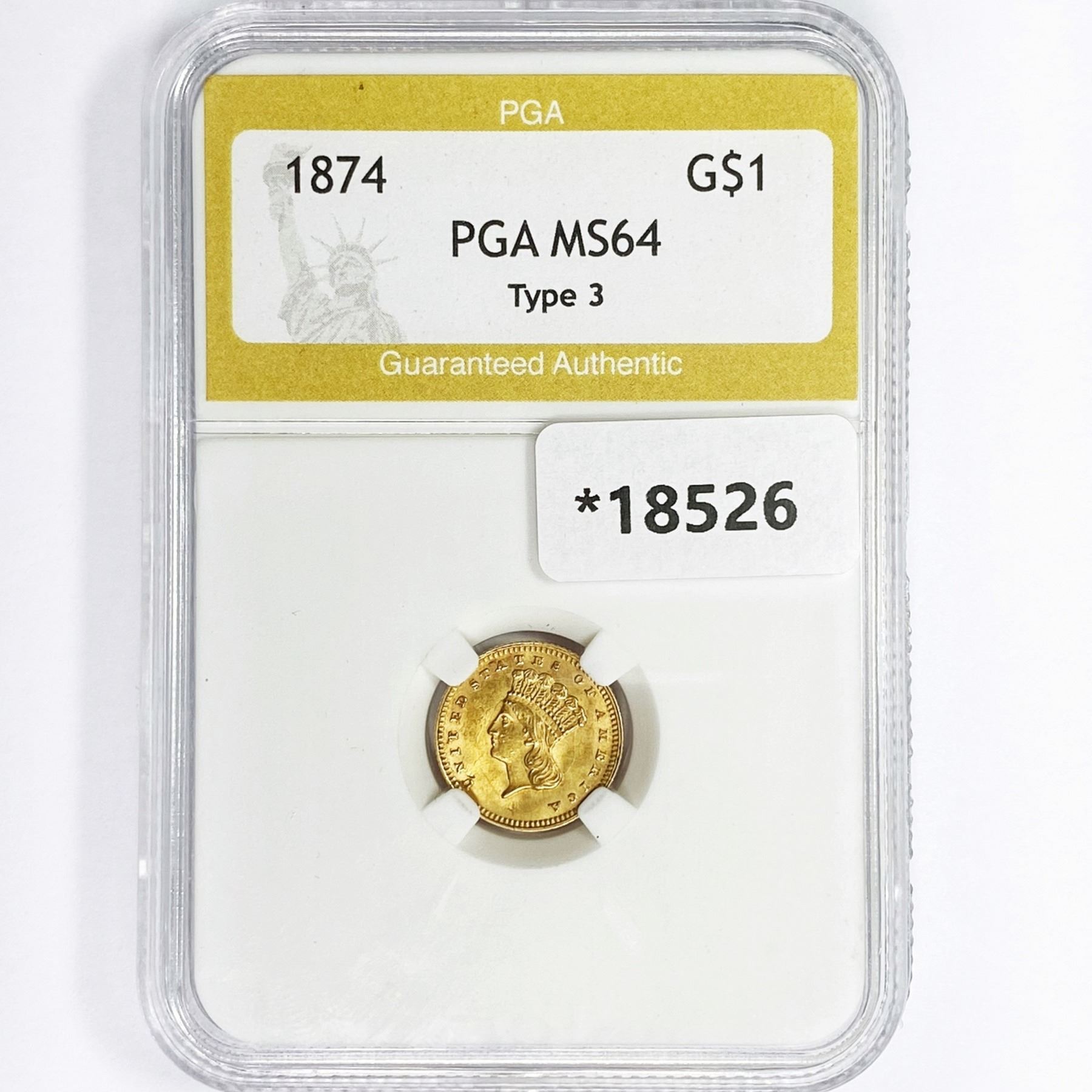 1874 Rare Gold Dollar PGA MS64