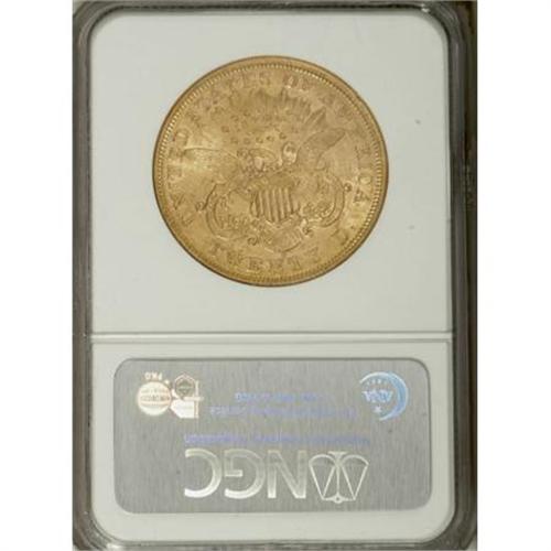 <B>1874-S $20 AU58 NGC.</B></I> NGC Census: (1021/470). PCGS Population (219/261). Mintage: 1,214,000. Numismedia Wsl. Price for NGC/PCGS coin in AU58: $735. (#8972)<BR><BR><B>Coin Engraver:</B> James B. Longacre<BR><BR><b>Shipping:</b> Coins & Currency (<a target="_blank" href="http://www.heritageauctions.com/common/shipping.php">view shipping information</a>\)