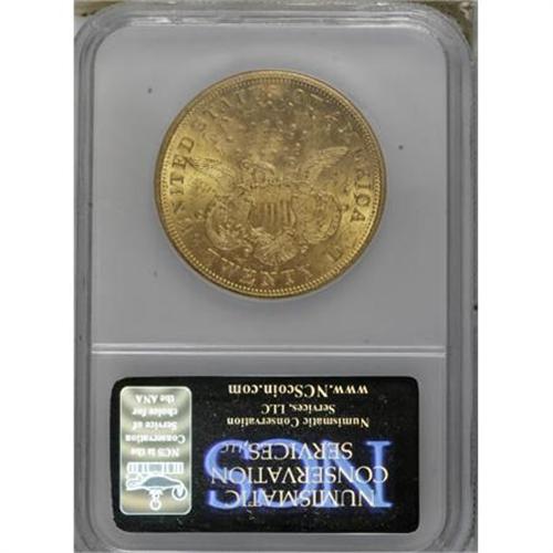 <B>1874-S $20 --Altered Surface--NCS. UNC Details.</B></I> NGC Census: (172/307). PCGS Population (69/210). Mintage: 1,214,000. Numismedia Wsl. Price for NGC/PCGS coin in MS60: $1,250. (#8972)<BR><BR><B>Coin Engraver:</B> James B. Longacre<BR><BR><b>Shipping:</b> Coins & Currency (<a target="_blank" href="http://www.heritageauctions.com/common/shipping.php">view shipping information</a>)