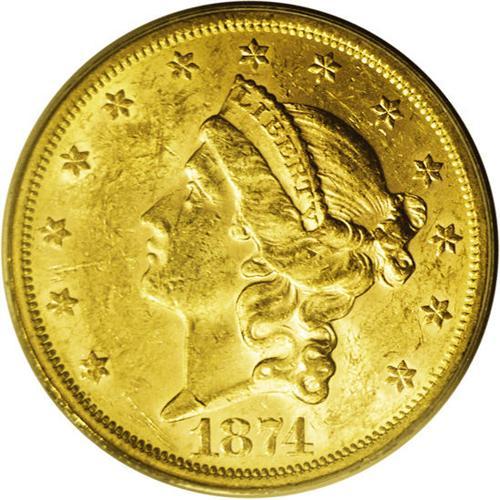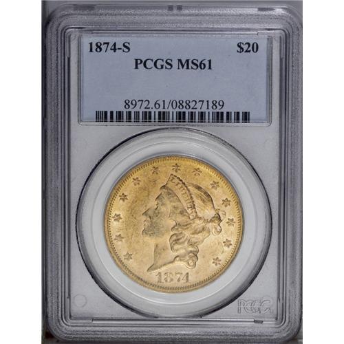 1874-S $20 MS61 PCGS. This is a bright, flashy double