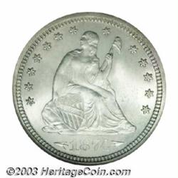 <table><tr><td><TABLE cellSpacing=0 cellPadding=0 width="100%" bgColor=#000000 border=0><TBODY> <TR><TD width="100%"><TABLE cellSpacing=1 cellPadding=3 width="100%" border=0><TBODY><TR><TD width="100%" bgColor=#79735c><FONT face=arial color=#ffffff size=3><B>Description</B> </FONT></TD></TR><TR><TD width="100%" bgColor=#ffffff><FONT face=arial size=2><B>1874-S 25C Arrows MS66 NGC.</B></I> Because of the discovery of a small hoard of 1874-S Quarters in a West Coast bank years ago, collectors now have a small supply of high grade examples. As always, this piece displays thick mint frost and each side has a fully brilliant, snow-white appearance that confirms its originality and the unaltered nature of the coin's surfaces. Fully struck throughout, there are no obvious abrasions on either side. Population: 15 in 66, 3 finer (7/03). </FONT></TD></TR></TBODY></TABLE></TD></TR></TBODY></TABLE><BR><A name=PricesRealized></A><TABLE cellSpacing=0 cellPadding=0 width="100%" bgColor=#000000 border=0><TBODY><TR><TD width="100%"><TABLE cellSpacing=1 cellPadding=3 width="100%" border=0><TBODY><TR><TD width="100%" bgColor=#79735c><A name=PR><FONT face=arial color=#ffffff size=3><B>Previous Prices from Heritage Auctions</B> </FONT></A></TD></TR><TR><TD bgColor=#f6f6ed><TABLE cellSpacing=0 cellPadding=0 width="100%" border=1><TBODY><TR><TD align=middle width="33%"><B>Date</B></TD><TD align=middle width="33%"><B>Service</B></TD><TD align=middle width="33%"><B>Price</B></TD></TR><TR bgColor=whitesmoke><TD width="33%"><B>11/30/1999</B></TD><TD width="33%">PCGS</TD><TD width="33%">$4,600.00</TD></TR><TR bgColor=whitesmoke><TD width="33%"><B>07/30/2002</B></TD><TD width="33%">NGC</TD><TD width="33%">$4,312.50</TD></TR><TR bgColor=whitesmoke><TD width="33%"><B>09/26/1998</B></TD><TD width="33%">NGC</TD><TD width="33%">$8,337.50</TD></TR><TR bgColor=whitesmoke><TD width="33%"><B>01/04/1995</B></TD><TD width="33%">NGC</TD><TD width="33%">$4,400.00</TD></TR><TR bgColor=whitesmoke><TD width="33%"><B>03/01/2001</B></TD><TD width="33%">NGC</TD><TD width="33%">$3,680.00</TD></TR></TBODY></TABLE></TD></TR><TR><TD bgColor=#ffffff><FONT face=arial size=1 ?>PLEASE NOTE: All prices realized reflect the final hammer price PLUS the buyer's premium in auctions that charge a buyer's premium. Each item has a notation at the top of the listing indicating whether that lot included a buyer's premium. Example: A item that sells with a final hammer price of $100 and a 20% buyer's premium will display with a price realized of $120. All information listed is intended to be as accurate as possible, but errors are possible. Please use this guide carefully and inform us of any inaccuracies. </FONT></TD></TR></TBODY></TABLE></TD></TR></TBODY></TABLE><BR><TABLE cellSpacing=0 cellPadding=0 width="100%" bgColor=#000000 border=0><TBODY><TR><TD width="100%"><TABLE cellSpacing=1 cellPadding=3 width="100%" border=0><TBODY><TR><TD width="100%" bgColor=#79735c colSpan=6><FONT face=arial color=#ffffff size=3><B>Price Guide*</B> </FONT></TD></TR><TR bgColor=#f6f6ed><TD align=middle><B>Grade</B> </TD><TD align=middle><B>Coin World<BR>(Trends)</B> </TD><TD align=middle><B>Numismedia<BR>Retail</B> </TD><TD align=middle><B>Numismedia<BR>Wholesale</B> </TD><TD align=middle><B>Coin<BR>Universe</B> </TD><TD align=middle><B>Heritage<BR>Value Index</B> </TD></TR><TR bgColor=#ffffff><TD align=middle>65</TD><TD align=right>---</TD><TD align=right>---</TD><TD align=right>$3,175.00</TD><TD align=right>$4,750.00</TD><TD align=right>$2,792.25</TD></TR><TR style="FONT-WEIGHT: bold" bgColor=#cccfdd><TD align=middle>66</TD><TD align=right>---</TD><TD align=right>---</TD><TD align=right>$5,450.00</TD><TD align=right>$8,400.00</TD><TD align=right>$5,880.00</TD></TR><TR bgColor=#ffffff><TD align=middle>67</TD><TD align=right>---</TD><TD align=right>---</TD><TD align=right>---</TD><TD align=right>---</TD><TD align=right>---</TD></TR><TR bgColor=#ffffff><TD colSpan=6><FONT size=1>*All information listed is intended to be as accurate as possible, but errors are possible. No item may be returned or refused based on this information which is provided as a service to our customers. You should contact each pricing source directly to determine the accuracy of this information. </FONT></TD></TR></TBODY></TABLE></TD></TR></TBODY></TABLE><BR><TABLE cellSpacing=0 cellPadding=0 width="100%" bgColor=#000000 border=0><TBODY><TR><TD width="100%"><TABLE cellSpacing=1 cellPadding=3 width="100%" border=0><TBODY><TR><TD width="100%" bgColor=#79735c><FONT face=arial color=#ffffff size=3><B>Population Guide</B> </FONT></TD></TR><TR bgColor=#ffffff><TD align=middle><!-- Begin Output of Population Grid--><TABLE cellSpacing=0 cellPadding=0 width="100%" border=0><TBODY><TR><TD vAlign=center><TABLE cellSpacing=0 width="100%" border=1 cellsadding="3"><TBODY><TR><TD vAlign=center><TABLE cellSpacing=0 cellPadding=3 width="100%" border=1><TBODY><TR><TD vAlign=center align=middle bgColor=#f0f1e8 colSpan=2 <CENTER><FONT face=Arial size=2><B>PCGS Pop </B></FONT><CENTER></CENTER></TD><TD vAlign=center align=middle bgColor=#f0f1e8 colSpan=2><CENTER><FONT face=Arial size=2><B>NGC Pop</B></CENTER></FONT></TD></TR><TR><TD vAlign=center><FONT face=Arial size=2>(66)</FONT> </TD><TD vAlign=center align=right><FONT face=Arial size=2>26</FONT> </TD><TD vAlign=center><FONT face=Arial size=2>(66)</FONT> </TD><TD vAlign=center align=right><FONT face=Arial size=2>15</FONT> </TD></TR><TR><TD vAlign=center><FONT face=Arial size=2>(>66)</FONT> </TD><TD vAlign=center align=right><FONT face=Arial size=2>1</FONT> </TD><TD vAlign=center><FONT face=Arial size=2>(>66)</FONT> </TD><TD vAlign=center align=right><FONT face=Arial size=2>3</FONT> </TD></TR></TBODY></TABLE></TD></TR></TBODY></TABLE></TD></TR></TBODY></TABLE><!-- End Output of Population Grid--></TD></TR></TBODY></TABLE></TD></TR></TBODY></TABLE><BR><TABLE cellSpacing=0 cellPadding=0 width="100%" bgColor=#000000 border=0><TBODY><TR> Important notice: Heritage usuall