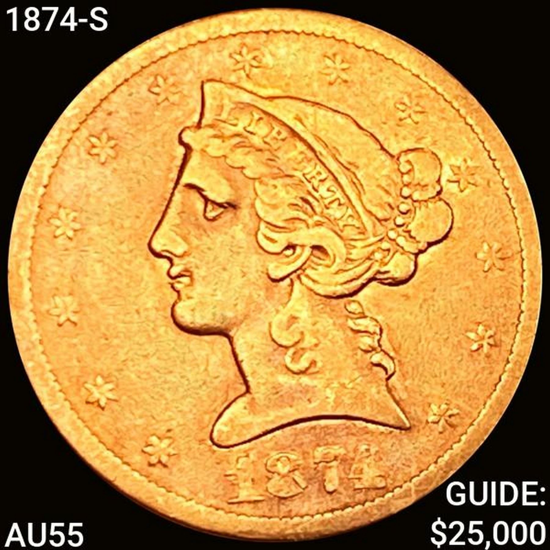 1874-S $5 Gold Half Eagle CLOSELY UNCIRCULATED