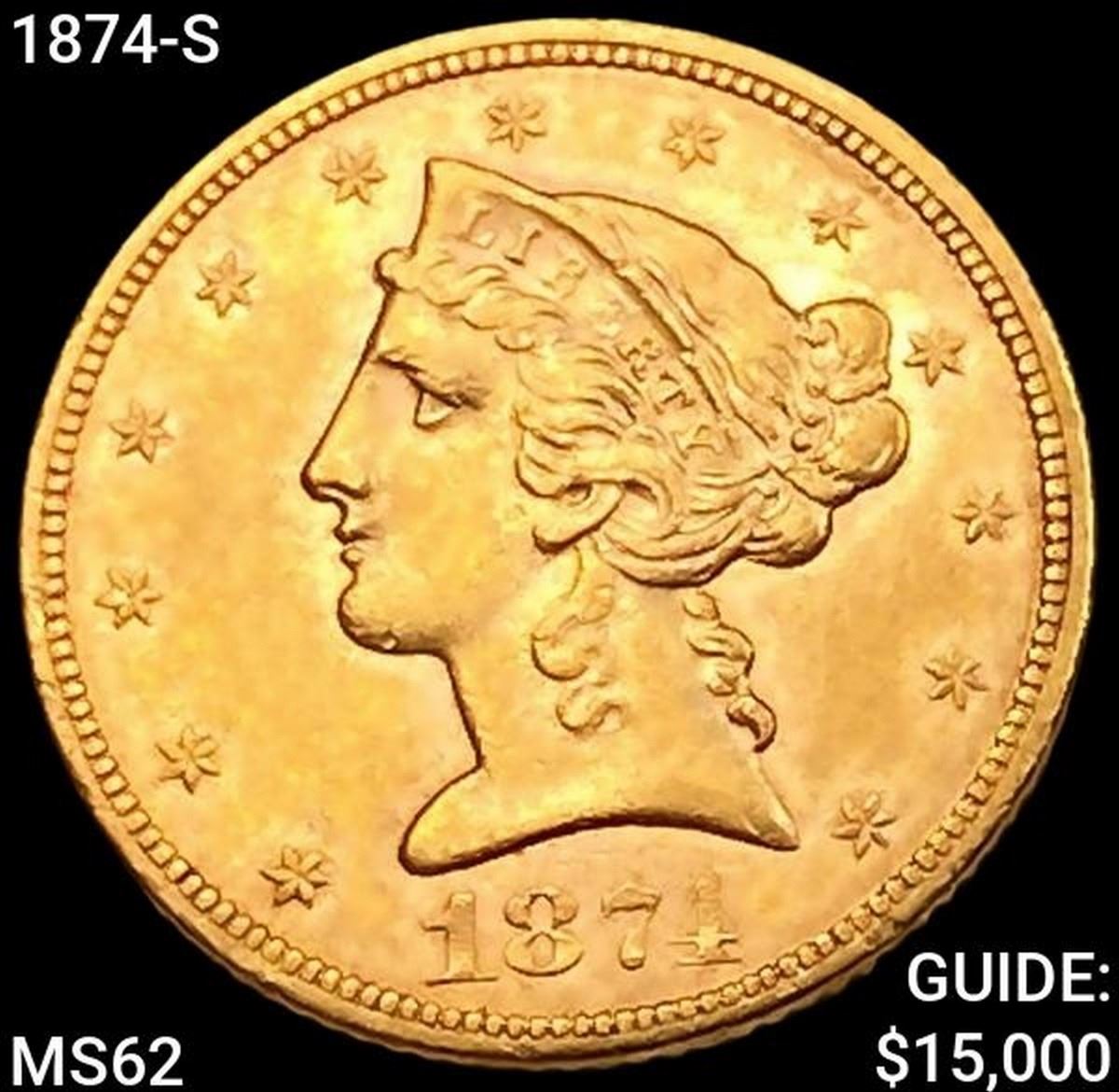 1874-S $5 Gold Half Eagle UNCIRCULATED