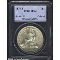 1874-S T$1 MS64 PCGS. Even though 2.5 million pieces were struck of this issue, it is surprisingly s